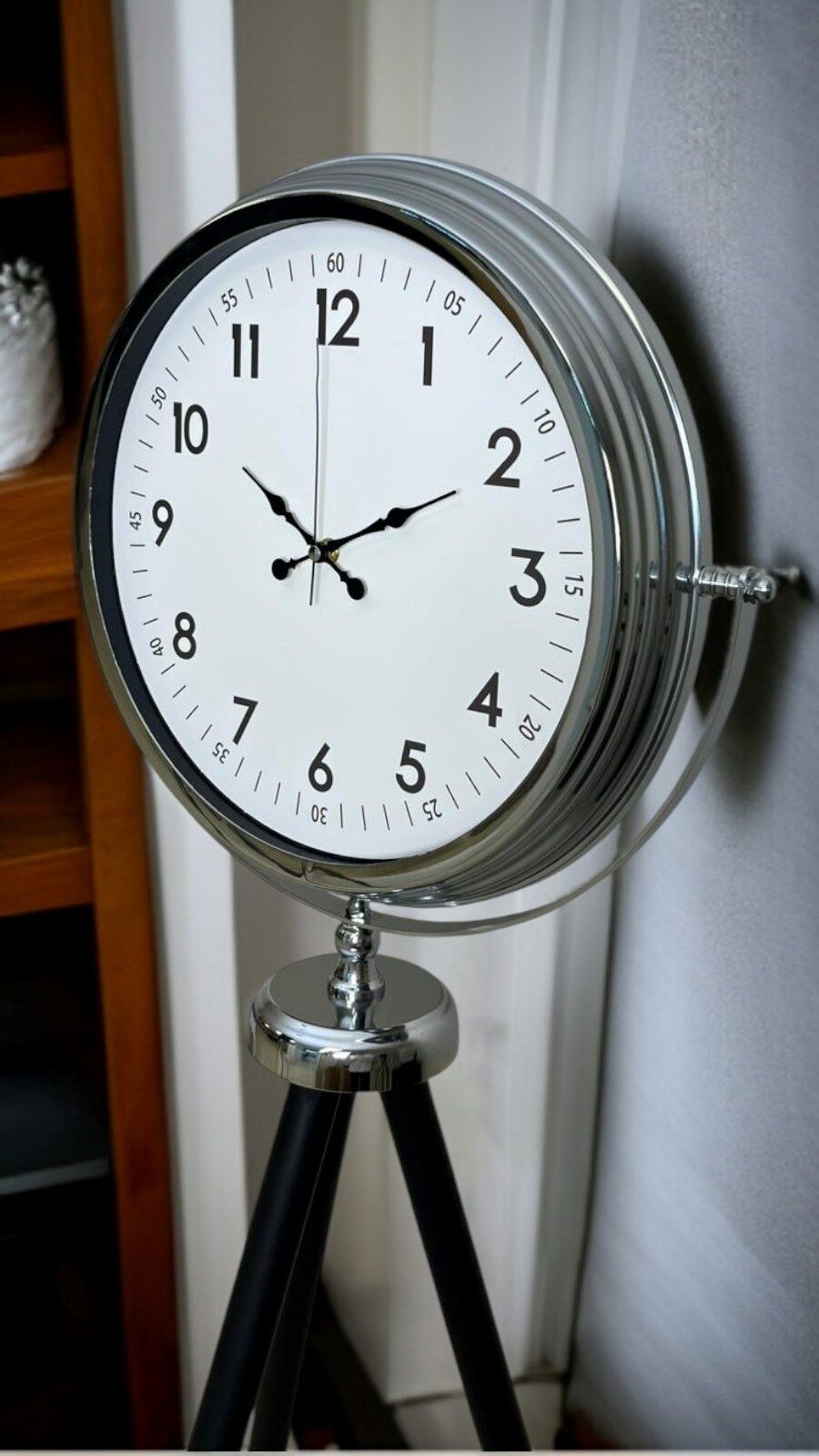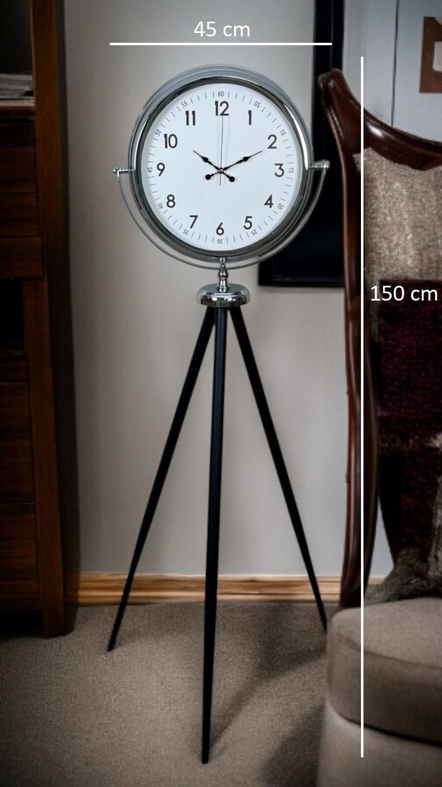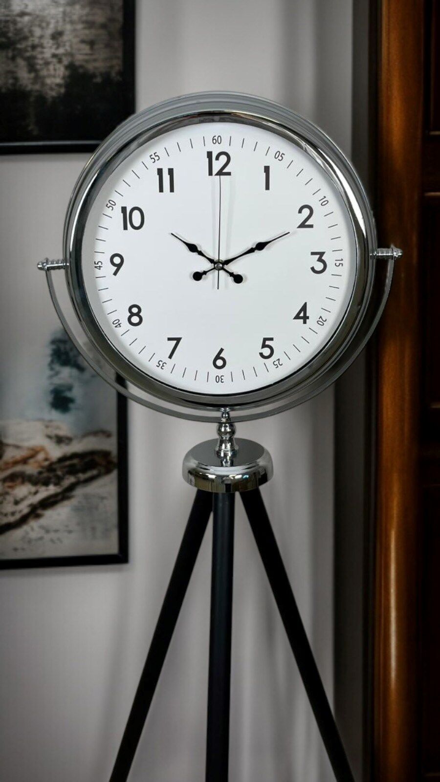 ⏱️ Krom Tripod Ayaklı Dekoratif Saat – 150 × 45 cm