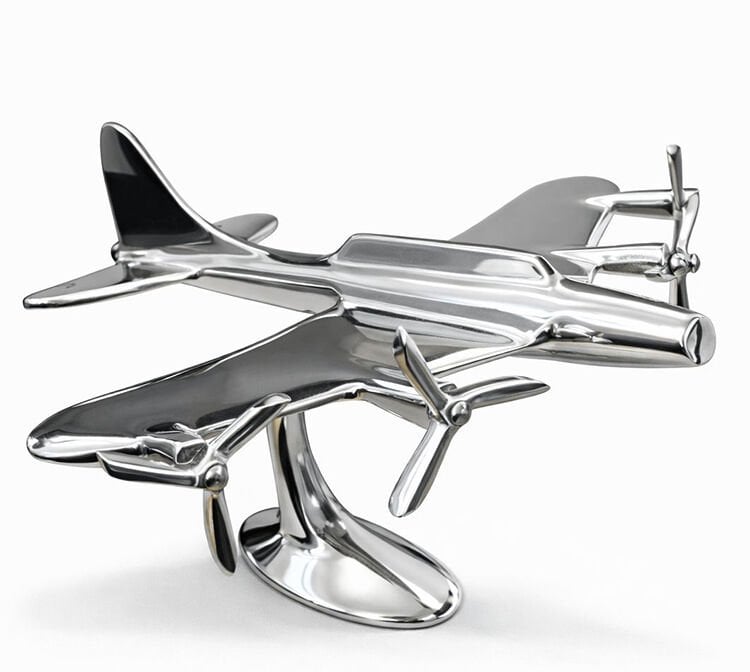 Krom Uçak, havacılık tutkunları ve modern dekorasyon meraklıları için tasarlanmış, hızı ve zarafeti simgeleyen son derece şık bir objedir. 17x20 cm boyutlarındaki ideal formu, aerodinamik hatları ve parlak yüzeyi ile bulunduğu her ortamda modern bir vurgu oluşturur. Yüksek kaliteli krom kaplama sayesinde elde edilen ayna efektli yüzeyi, ışığı mükemmel şekilde yansıtarak çalışma masanıza veya rafınıza dinamik bir hava katar. Ürünün altında yer alan kavisli ve estetik stand yapısı, uçağın havadaymış gibi görünmesini sağlayarak tasarıma derinlik kazandırır. Bu dekoratif uçak modeli, dayanıklı metalik malzemesi ile uzun ömürlü bir kullanım sunarken, pürüzsüz işçiliği ile premium bir his uyandırır. Hem ofis masaları için prestijli bir aksesuar hem de havacılığa ilgi duyan sevdikleriniz için unutulmaz bir hediyelik eşya seçeneği olan bu krom uçak biblosu, zamansız tasarımıyla her türlü iç mekan stiline kolayca uyum sağlar.