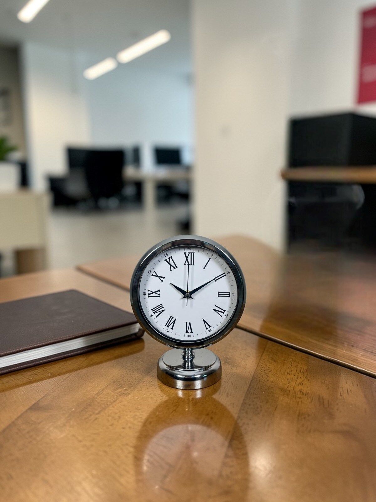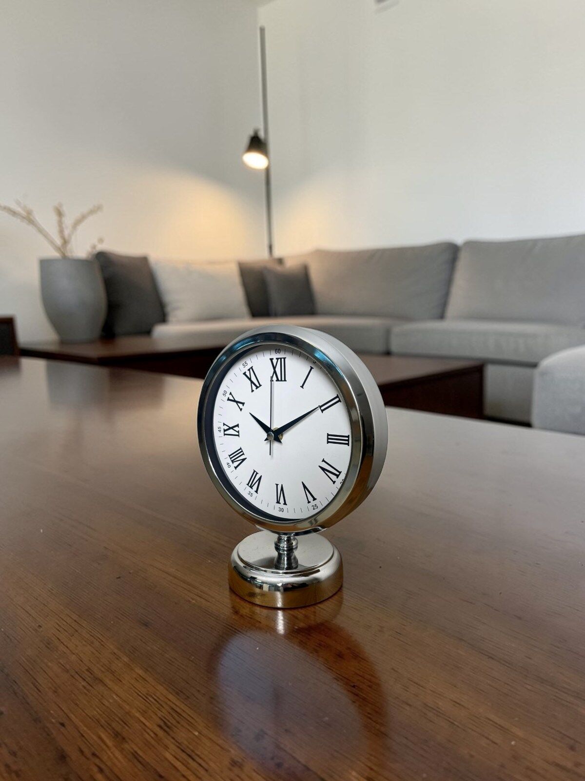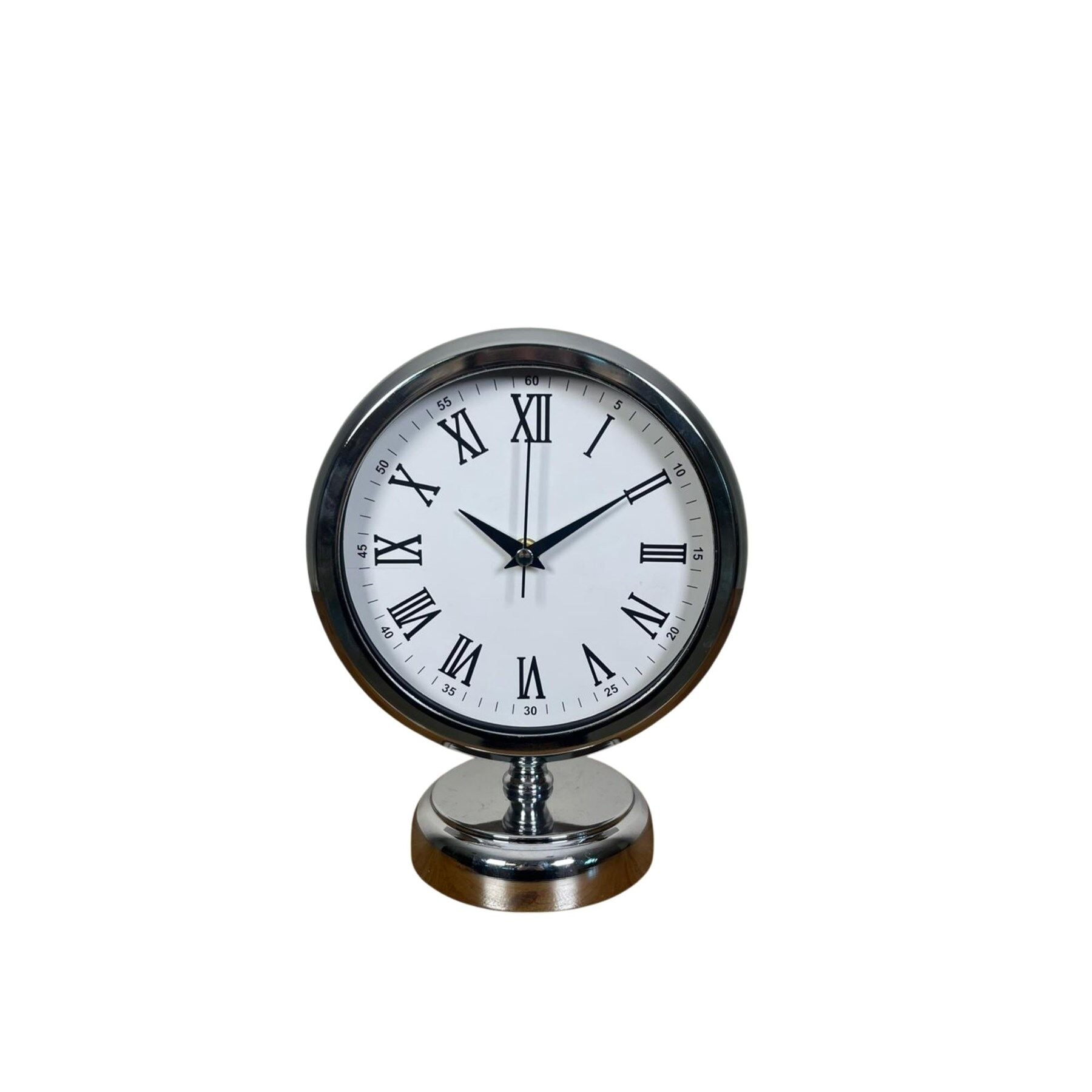 Modern ve klasik çizgileri bir araya getiren 25 x 20 cm krom masa saati, bulunduğu ortama zarif ve prestijli bir görünüm kazandırır. Parlak krom kaplama metal gövdesi ve Roma rakamlı beyaz kadranı, saatin hem klasik hem de modern dekorasyonlara uyum sağlamasını sağlar. Ofis masalarında, çalışma alanlarında, salonlarda veya sehpa üzerinde dekoratif bir aksesuar olarak rahatlıkla kullanılabilir.