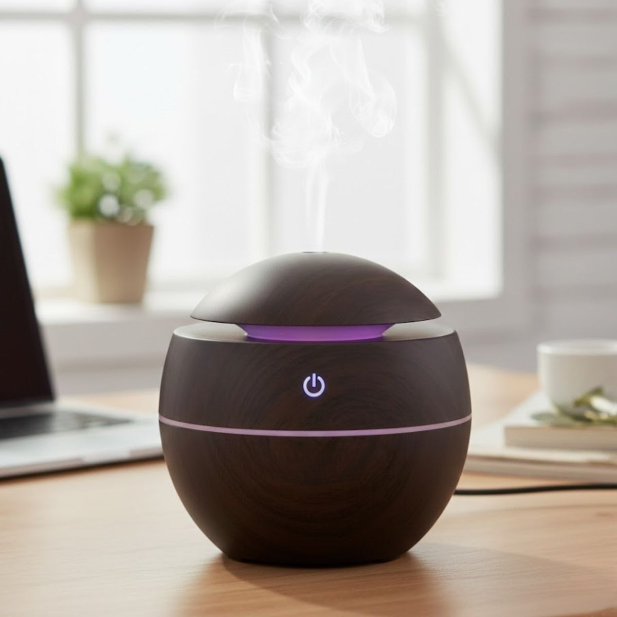 Küre Model Akasya Renk Hava Nemlendirici – Ultrasonik Soğuk Buhar Makinesi, LED Işıklı Masaüstü Oda Nemlendirici