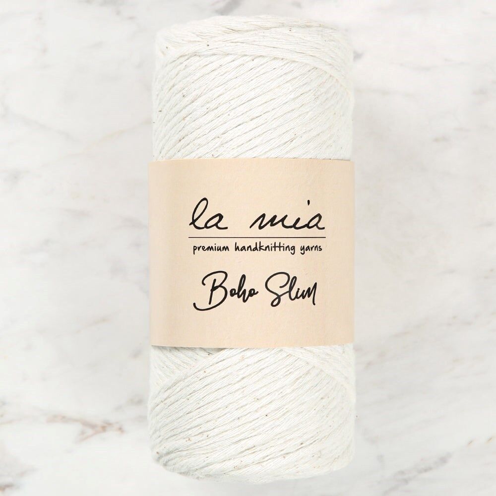 La Mia Boho Slim Tek Büküm Makrome İpi Makrome tığ veya şiş kullanmadan elle birbiri arasından geçirilen ipliklerden oluşan bir sanattır. La Mia Boho Slim makrome ipliği 3 mm kalınlığında ve 29 kattır. Yumuşak aynı zamanda da dayanıklıdır. Tarakla kolayca taranabilir.Kullanım Alanı: duvar süsü, kapı süsü, çanta, abajur, runner, perde, anahtarlık vb. yapımında kullanılabilir.