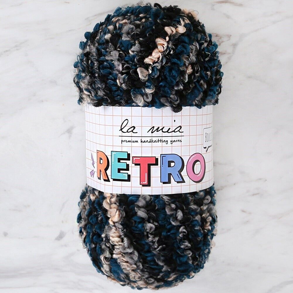 La Mia Retro is a special type of yarn with which you can create unique textured products. It is indispensable for winter months with its colorful structure and very soft texture. It will give a nice effect to your braids due to the fact that the structure of the thread is curls.