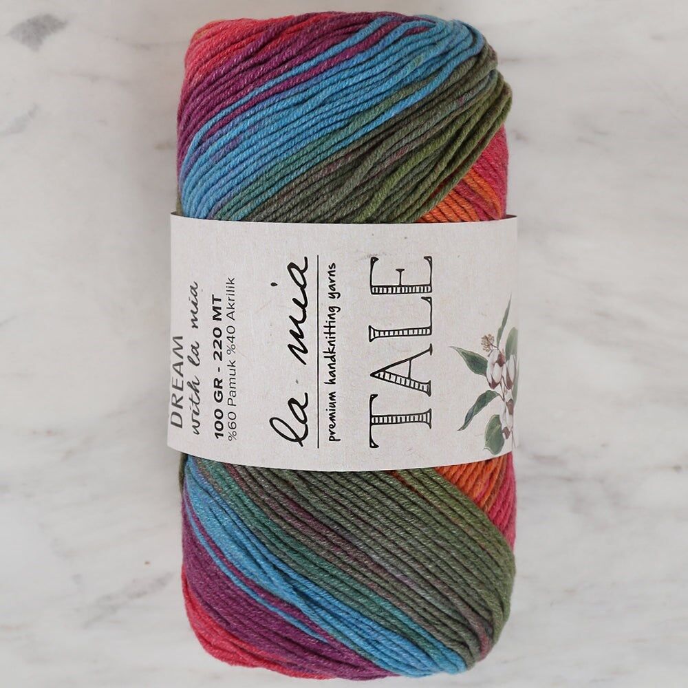 La Mia Markası'na ait yepyeni ürün TALE ile hayalini yarat. Geçişli renk tonlarının hakim olduğu bu seri ile havanız değişecek. Yumuşak ve kolay tüylenmeyen yapısı, güzel renk tonları ile örgüleriniz artık daha gösterişli. Tüm örgü modellerinizde güvenle tercih edebilirsiniz.