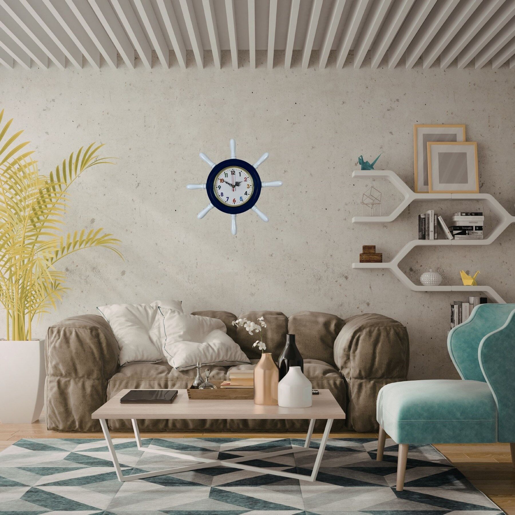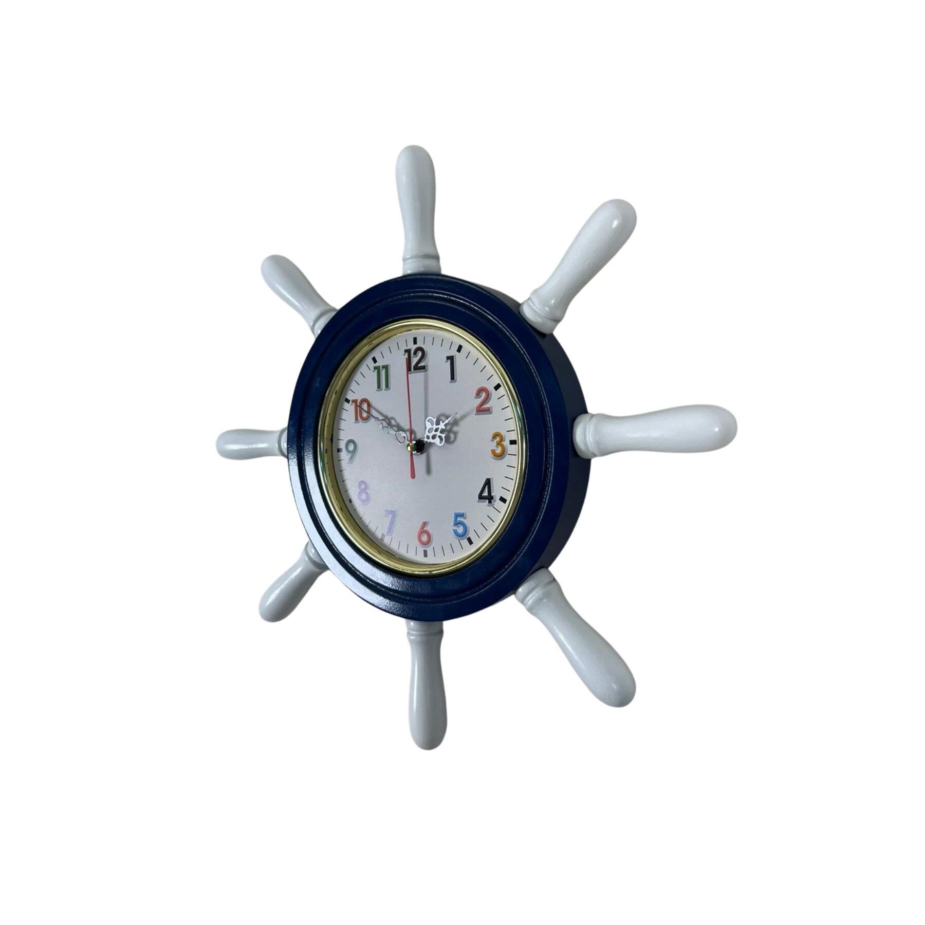 Lacivert gövdesi ve beyaz dümen kolları ile klasik denizci renklerini yansıtan bu saat, dekoratif görünümünün yanı sıra kullanışlı bir zaman göstergesidir. Saat kadranında bulunan renkli rakamlar sayesinde saat kolayca okunabilir ve ortama eğlenceli bir görünüm katar.