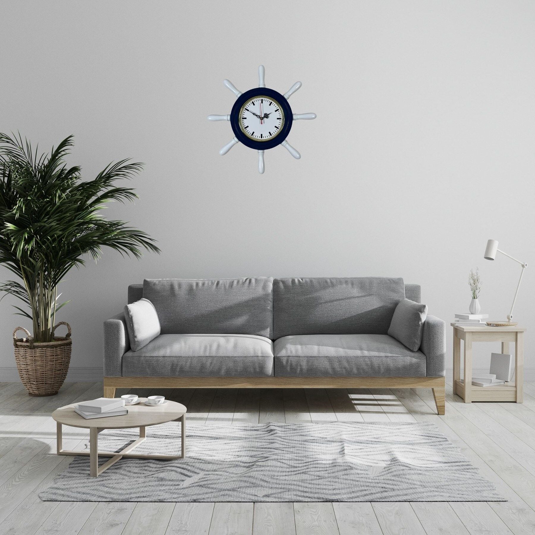 Lacivert gövdesi ve beyaz dümen kolları sayesinde klasik denizcilik stilini yansıtır ve bulunduğu ortama estetik bir görünüm katar. Sade ve net kadran tasarımı sayesinde saat kolay okunur ve dekoratif görünümü ile yaşam alanlarına farklı bir karakter kazandırır.