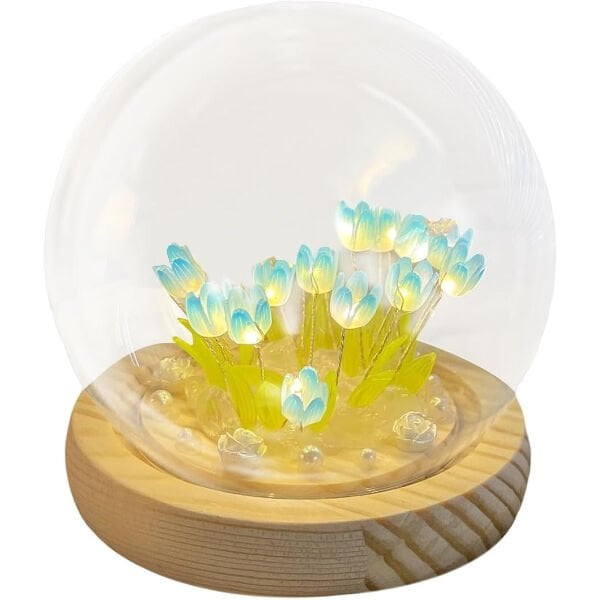 LED IŞIKLI KENDİN YAP LALE CAM KÜREÜrün ÖzellikleriŞeffaf cam fanus, yapay lale çiçekleri, kristal taşlar ve ahşap taban. LED ışıklarla donatarak, sıcak bir ışık yayarak hoş bir atmosfer oluşturur.Lale çiçekleri, lale yaprakları, kristal taşlar, yapıştırıcı çubukları ve cımbız gibi aksesuarlarla birlikte gelir. Çiçeklerin ve dekorasyon öğelerinin yerleştirilmesi kullanıcı tarafından yapılır. Kompakt yapısıyla masalar, raflar veya yatak odası dekorasyonu için idealdir. Ev dekorasyonu, romantik sürprizler, hediyelik eşya veya gece lambası olarak kullanılabilir. Kendi dekorasyonunuzu oluşturabileceğiniz yaratıcı bir deneyim sunar.LED ışıklar, düşük enerji tüketimi ve uzun ömürlülük sağlar. Modern ve zarif tasarımıyla her türlü yaşam alanına uyum sağlar.Bu ürün, özellikle özel günlerde hediye olarak da tercih edilebilecek şık ve işlevsel bir dekoratif aksesuardır.Paket İçeriği1 adet Cam Fanus1 adet Ahşap Taban1 adet LED Işık Şeridi1 adet Yapay Lale Çiçek Seti1 adet Kristal Taş Paketi1 adet Yapıştırıcı Çubuğu1 adet Cımbız