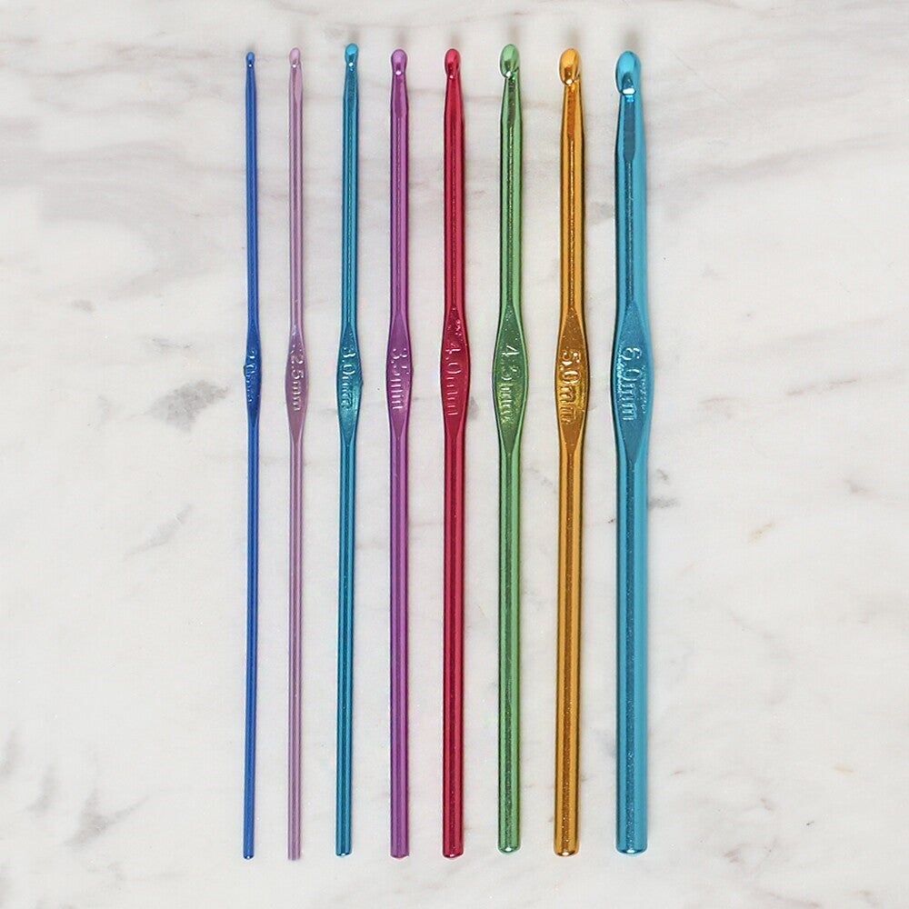 - Renkli Metal Yün Tığ numaraları; 2 mm, 2.5 mm, 3 mm, 3.5 mm, 4 mm, 4.5 mm, 5 mm, 6 mm,