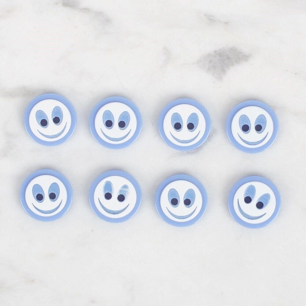 Loren Crafts 8 li Gülen Yüz Mavi Düğme - 0610