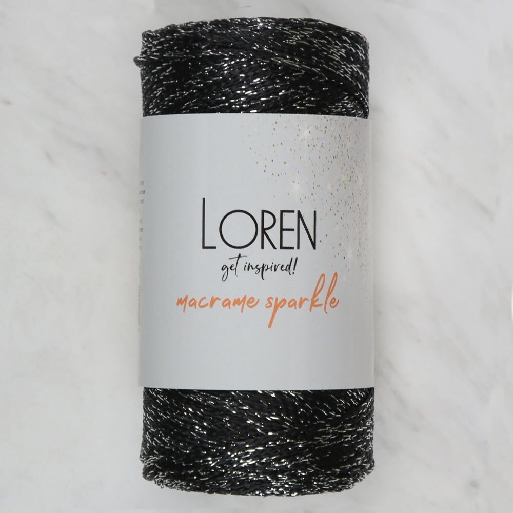 Loren Macrame Sparkle Simli Siyah El Örgü İpi - RM