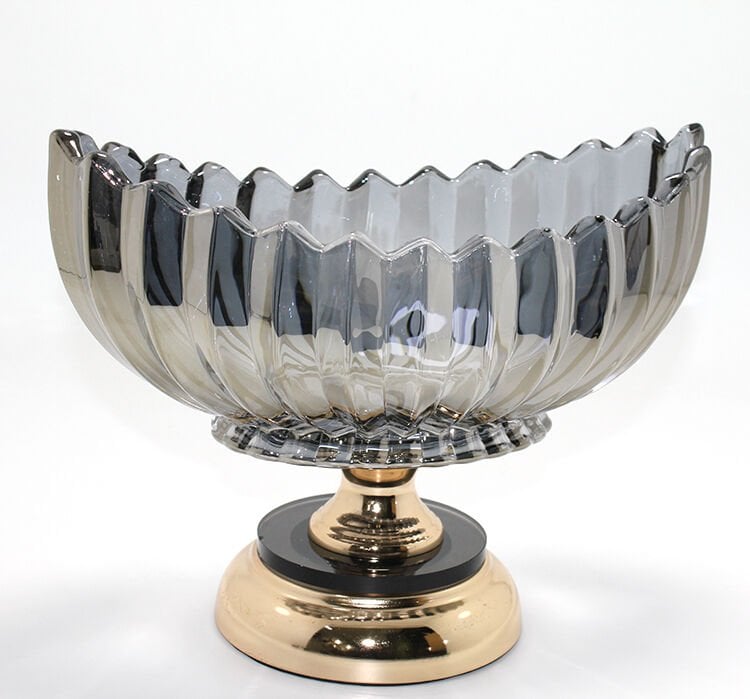 Lüks Füme Kristal Cam Gondol Gold Ayaklı Sunumluk