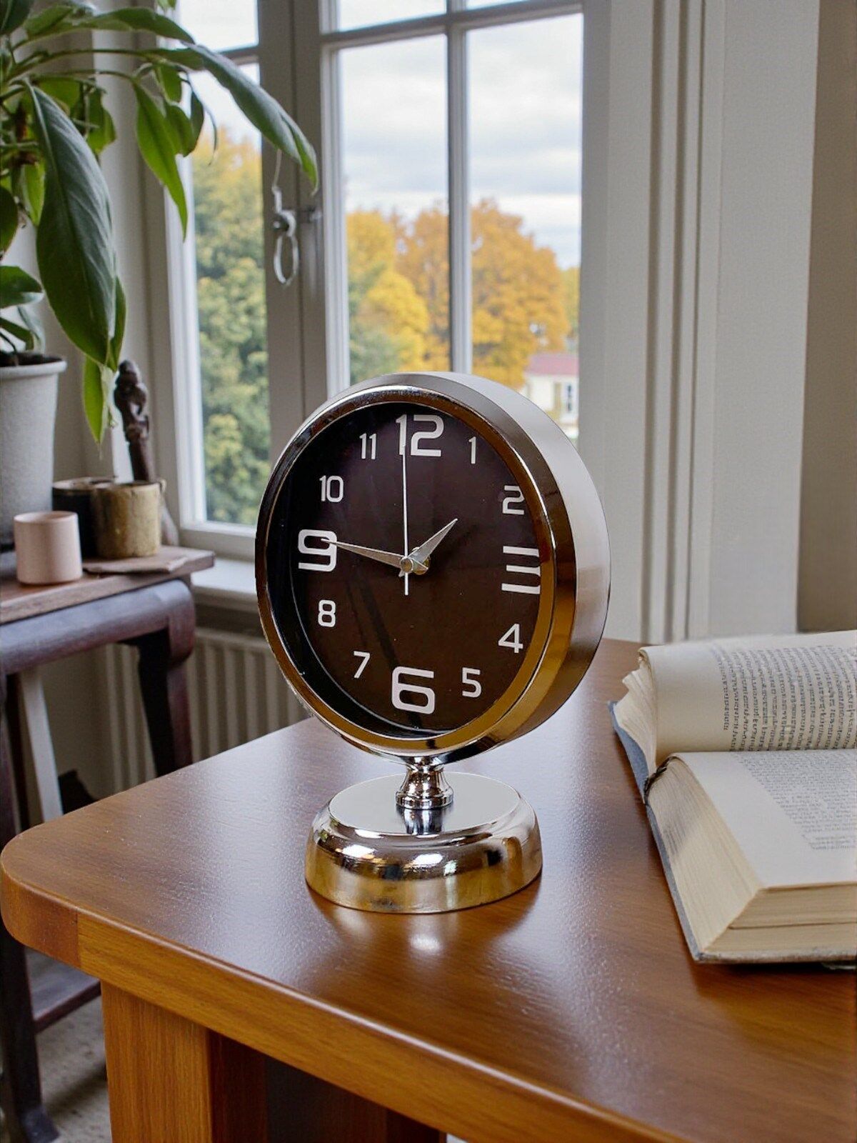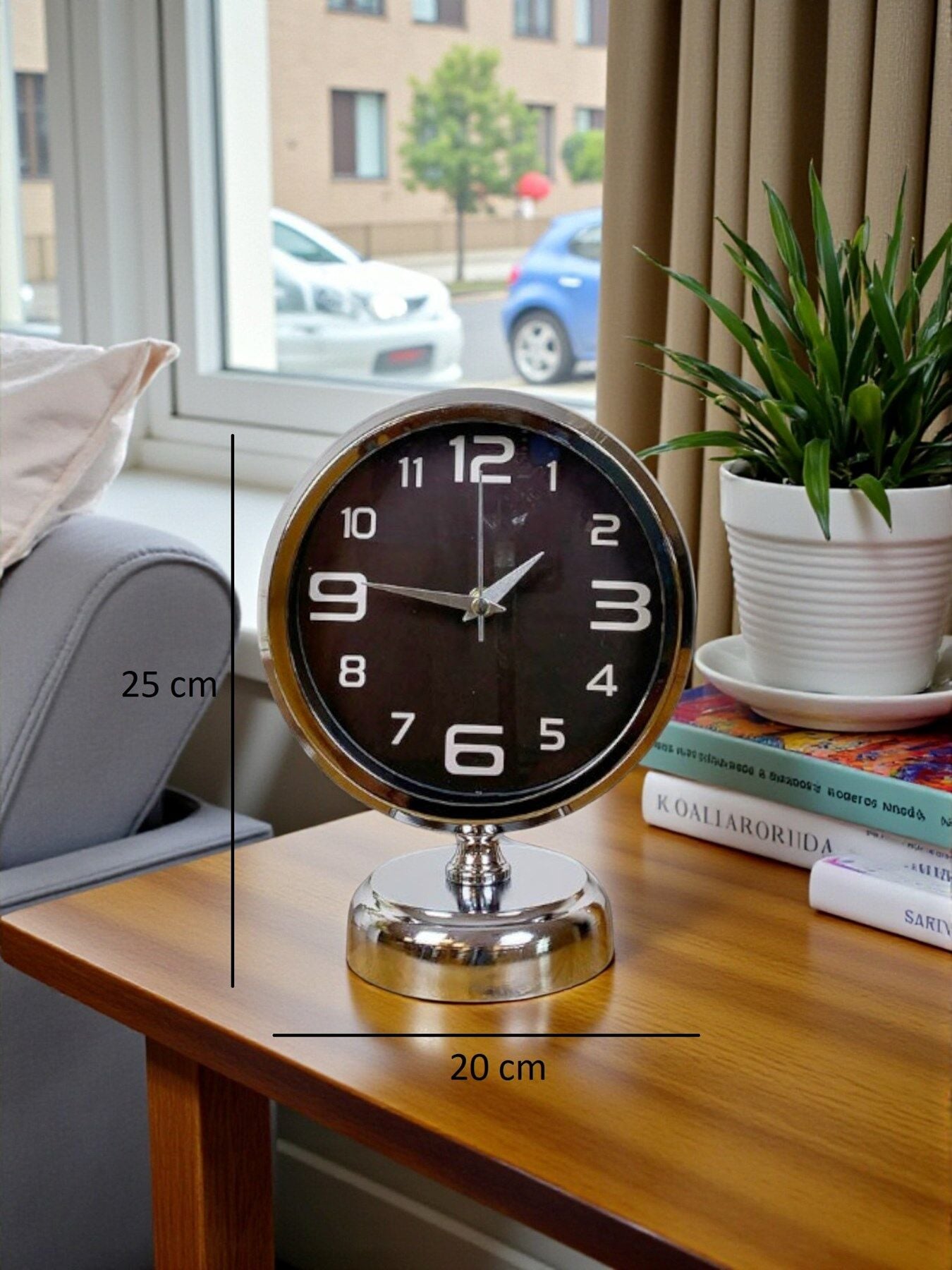 Parlak krom kaplaması ve gerçek cam ön yüzeyi ile hem dayanıklı hem de şık bir görünüm sunan bu dekoratif masa saati, sessiz çalışan mekanizması sayesinde tik-tak sesi olmadan kullanım rahatlığı sağlar. Modern ve zarif tasarımıyla ofis, salon, çalışma masası veya vitrinde mükemmel bir tamamlayıcıdır.