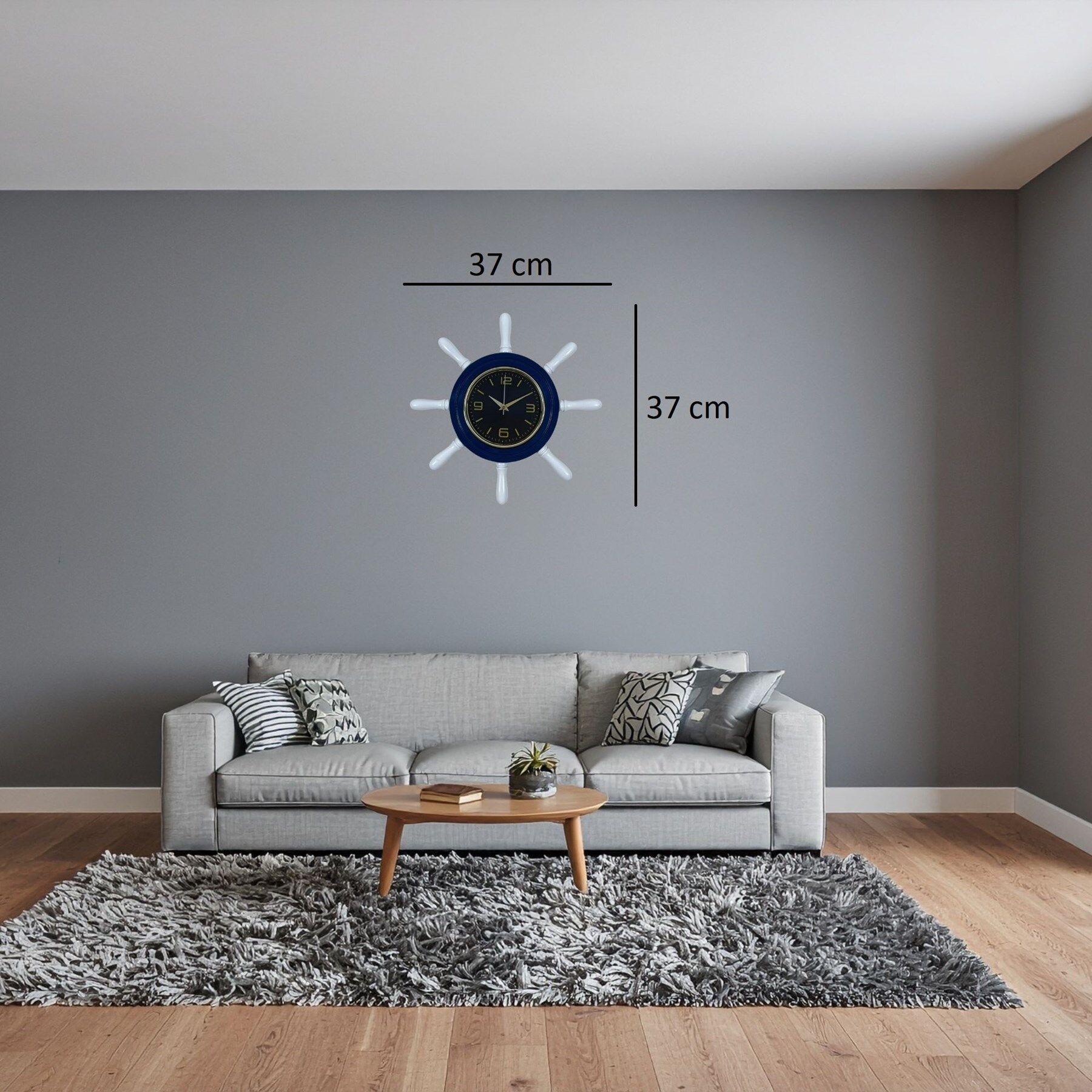 Lacivert Kavelalı Dümen Duvar Saati – 37 cm Marin Temalı Dekoratif Duvar Saati