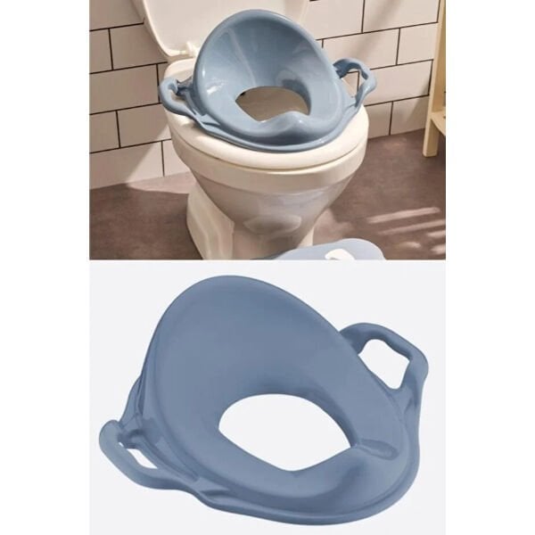 Mavi kulplu çocuk klozet adaptörü, tuvalet eğitim sürecindeki çocuklar için güvenli, konforlu ve pratik bir kullanım sunmak üzere özel olarak tasarlanmıştır. Ergonomik formu sayesinde standart klozetlerin üzerine kolayca yerleştirilebilir ve çocukların klozeti korkmadan kullanabilmesine yardımcı olur. Yan kısımlarda yer alan kulplar, çocuğun dengede kalmasını destekleyerek oturma sırasında ekstra güven hissi sağlar. Kaymaz yapıya sahip alt yüzeyi, kullanım esnasında adaptörün klozet üzerinde sabit kalmasına yardımcı olur ve istenmeyen kaymaları önler. Yuvarlatılmış kenar yapısı ve pürüzsüz yüzeyi sayesinde çocuk cildine uyumlu, rahat ve tahriş etmeyen bir deneyim sunar. Dayanıklı plastik malzemeden üretilmiş olup uzun süreli kullanım için uygundur ve kolay temizlenebilir yapısıyla hijyenik kullanım avantajı sağlar. Hafif ve taşınabilir tasarımı sayesinde evde, seyahatte veya misafirlikte rahatlıkla kullanılabilir. Canlı mavi rengi ile çocukların ilgisini çekerken tuvalet eğitimini daha eğlenceli ve motive edici hale getirir. Tuvalet alışkanlığının kazandırılmasında ebeveynlere büyük kolaylık sağlayan bu adaptör, çocukların bağımsız kullanım becerilerini destekler.