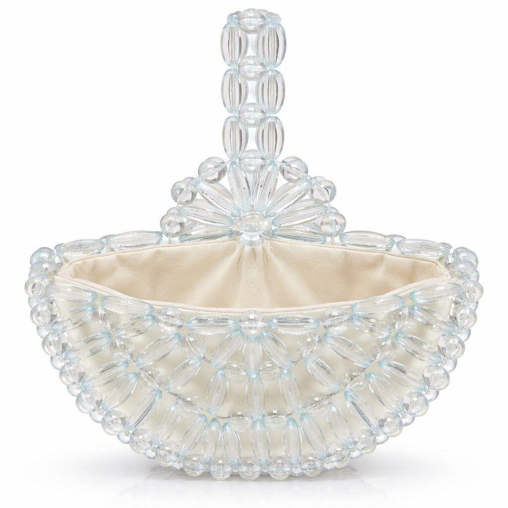 Atelier Emine’in Crystal Gelato Couture koleksiyonuna ait Melo Snowfall, merkezden dışa doğru genişleyen radyal örgü mimarisiyle tasarlanmış, heykelsi karaktere sahip premium el yapımı kristal mini çanta modelidir.