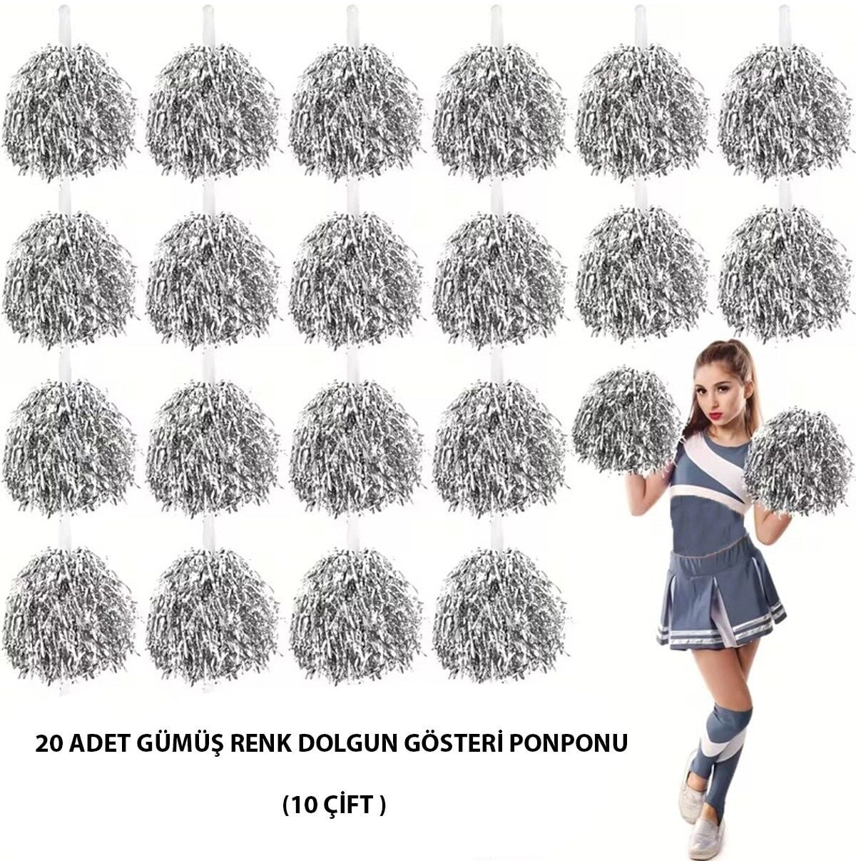 Mey İthalat® 10 Çift ( 20 Adet ) Gümüş Renk 23 Nisan 19 Mayıs 29 Ekim Okul Gösteri Ponponları
