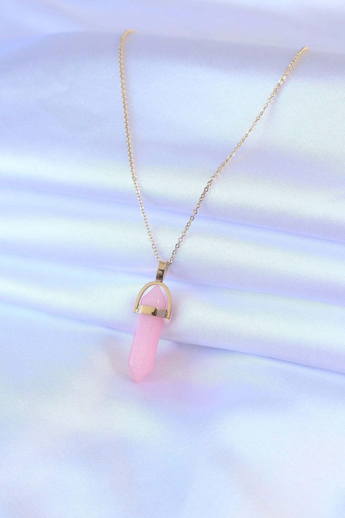 Mey İthalat® 316L Çelik Gold Renk Kristal Pembe Taş Model Kadın kolye