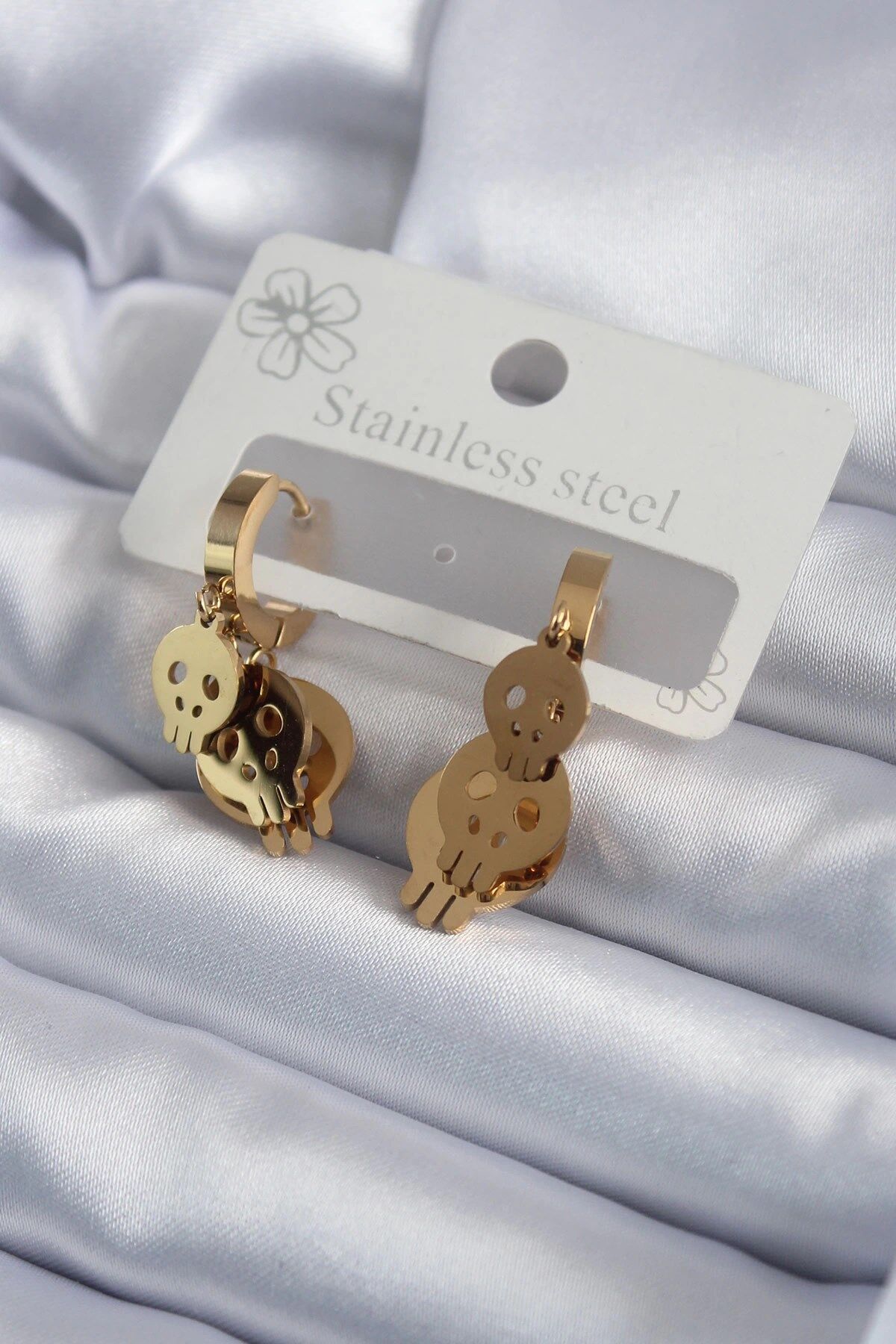 Mey İthalat® 316L Çelik Gold Renk Sallantı Kuru Kafa Model Kadın Küpe