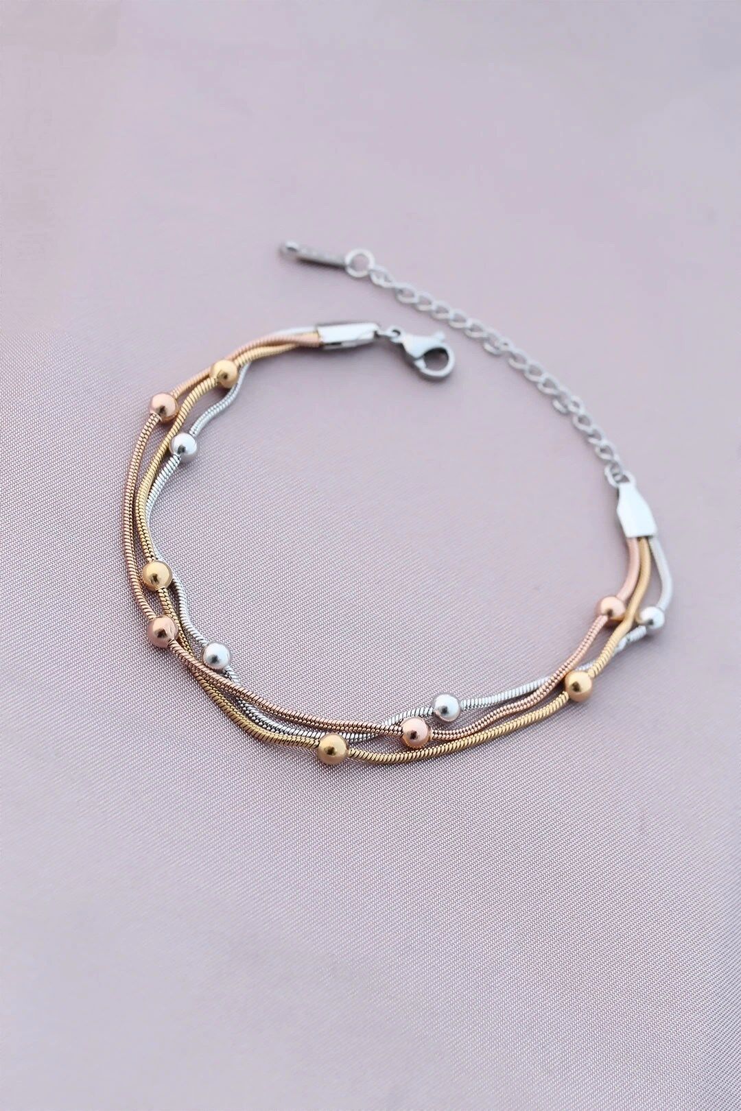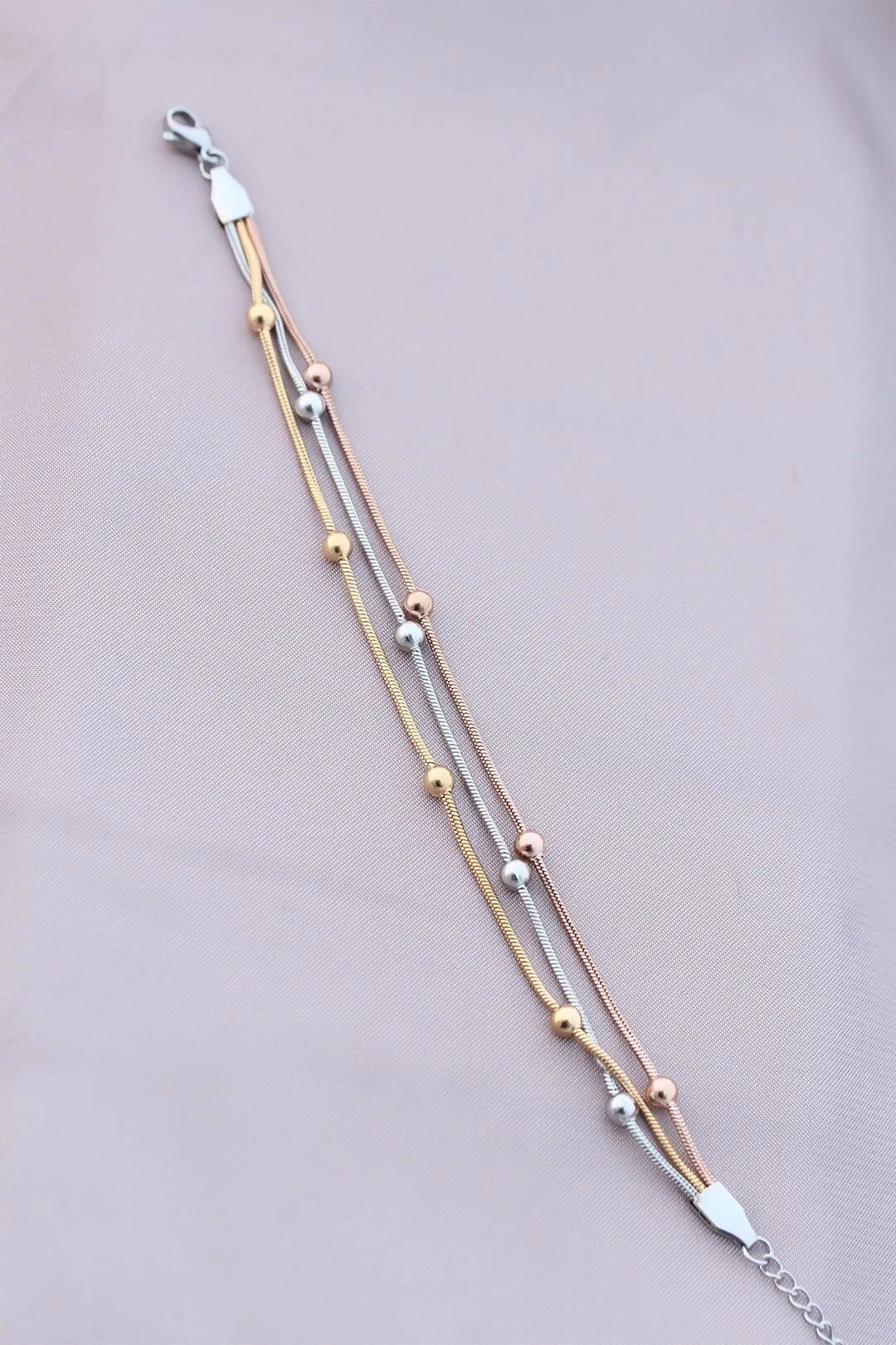 Mey İthalat® 316L Kararmaz Çelik Gümüş Renk Top Zincirli Kadın Bileklik