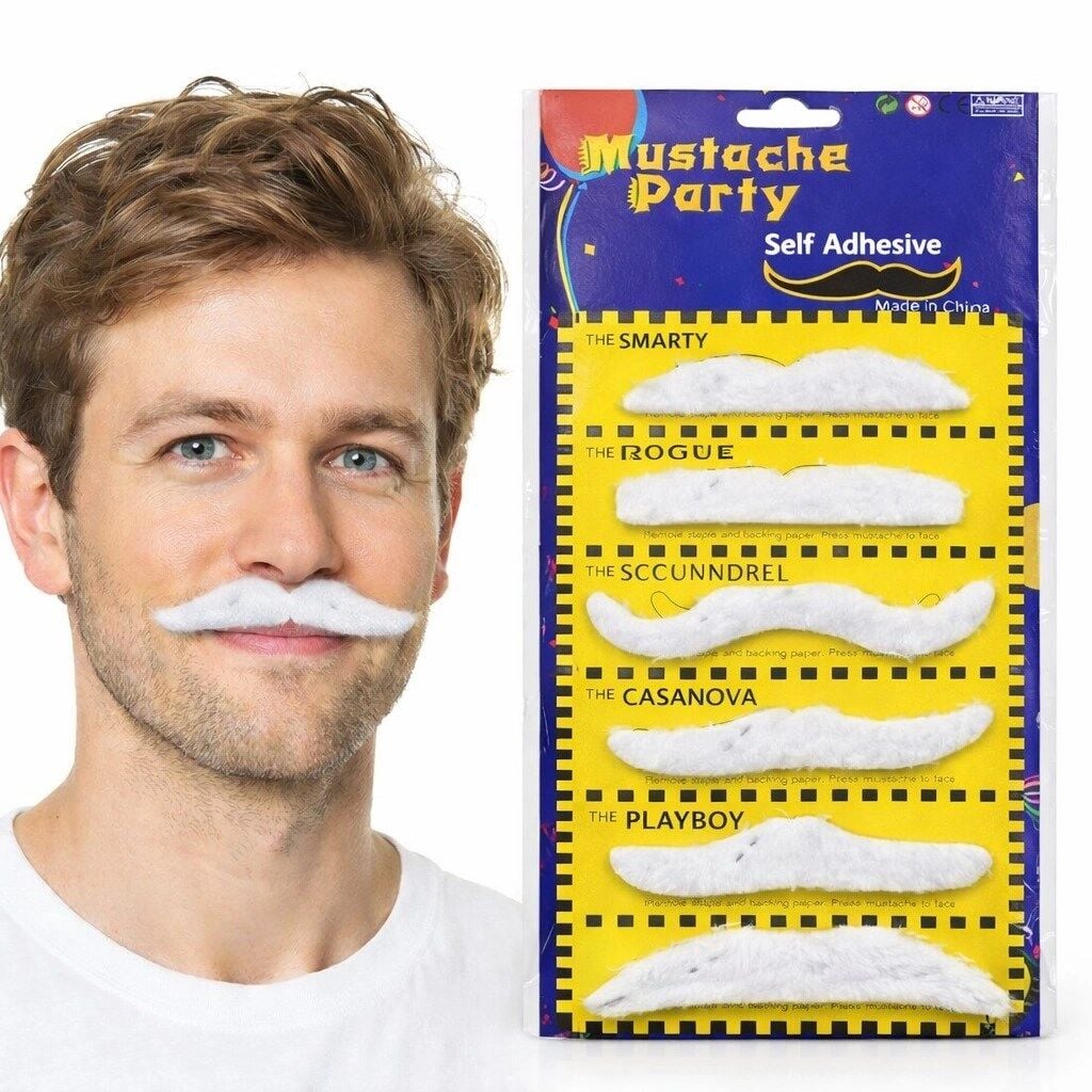 Mey İthalat® 6’lı Yapışkanlı Beyaz Parti Bıyık Seti – Farklı Modeller