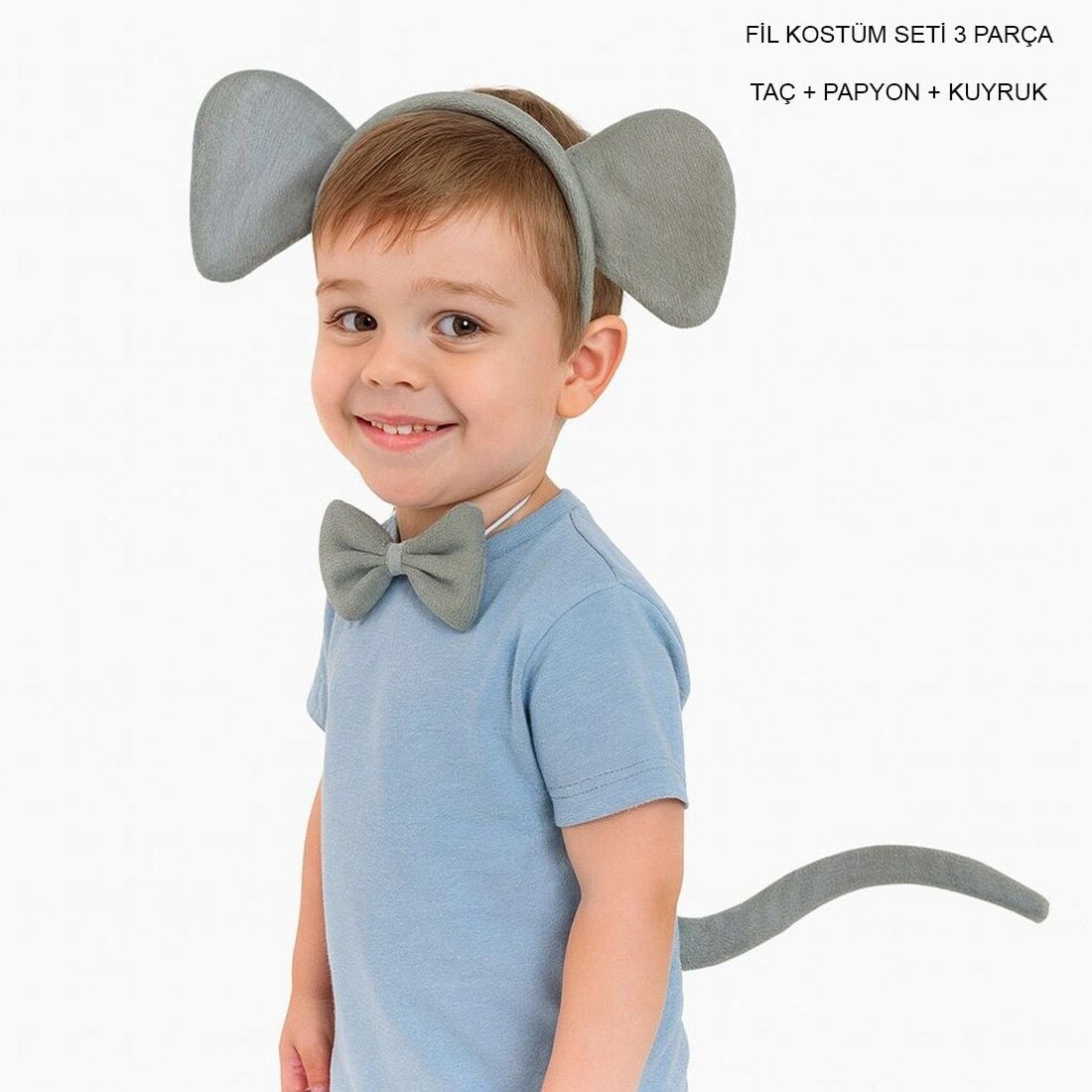 Mey İthalat® Fil Kostümü Aksesuar Seti 3 lü - Taç Papyon Kuyruk