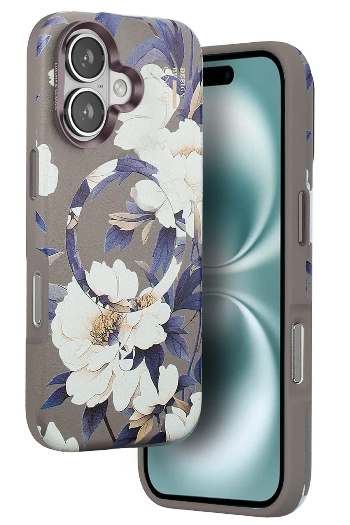 Mey İthalat®  iPhone 16 Flower Series Magsafe Kapak - Gri