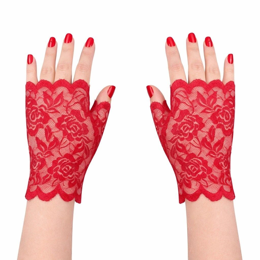 Zarif ve dikkat çekici tasarımıyla öne çıkan kırmızı gül desenli dantel parmaksız eldiven, özel günler, parti organizasyonları ve kostüm kombinleri için ideal bir aksesuardır. İnce dantel dokusu ve gül desenli tasarımı ürüne estetik ve şık bir görünüm kazandırır.