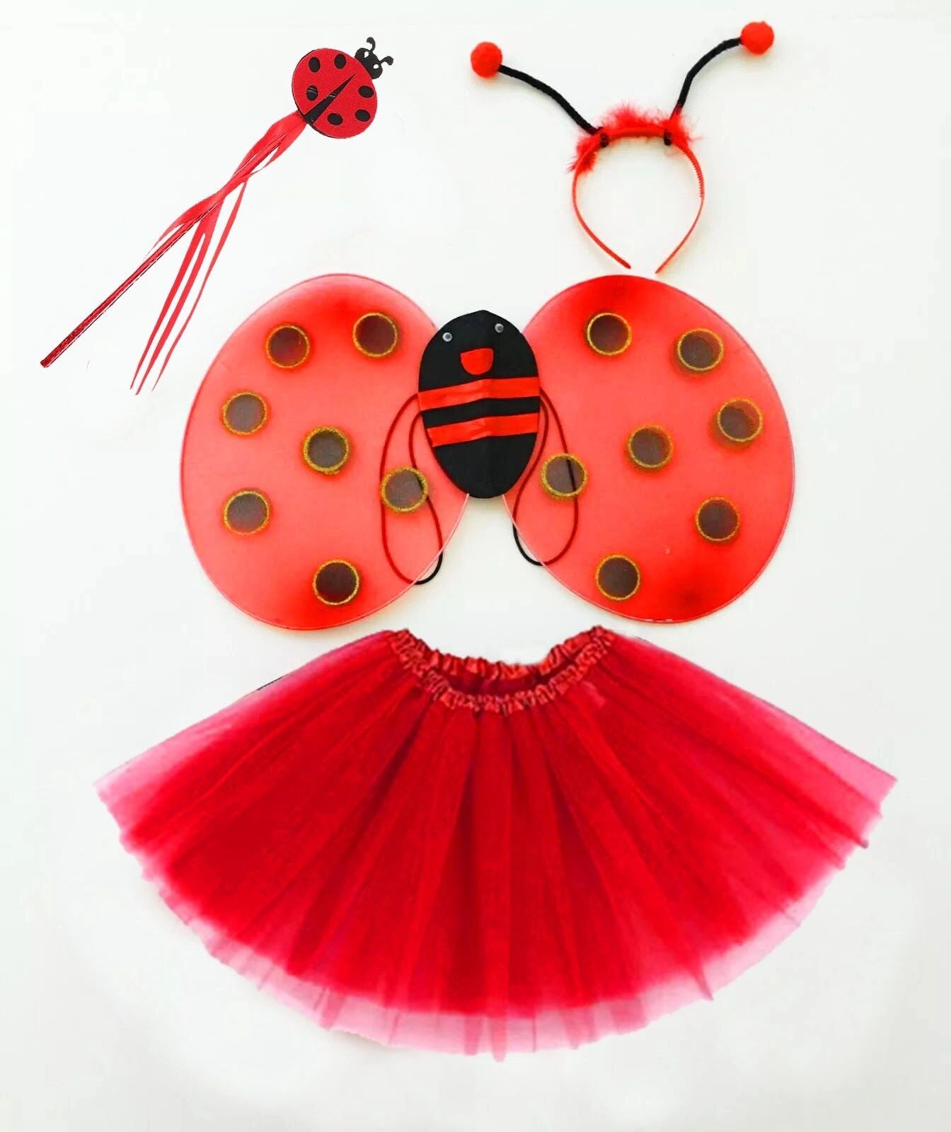 Mey İthalat® Kırmızı Uğur Böceği Ateş Böceği Kostüm Seti - (Tütü, Kanat, Taç, Asa)