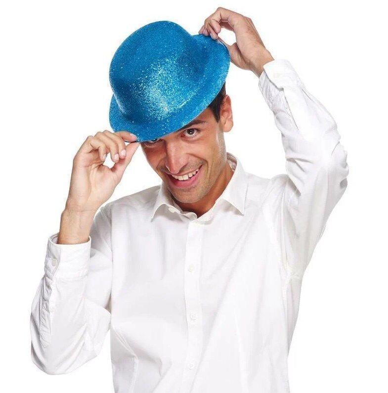 Mey İthalat® Mavi Renk Simli Melon Yuvarlak Parti Şapkası 24x26 cm