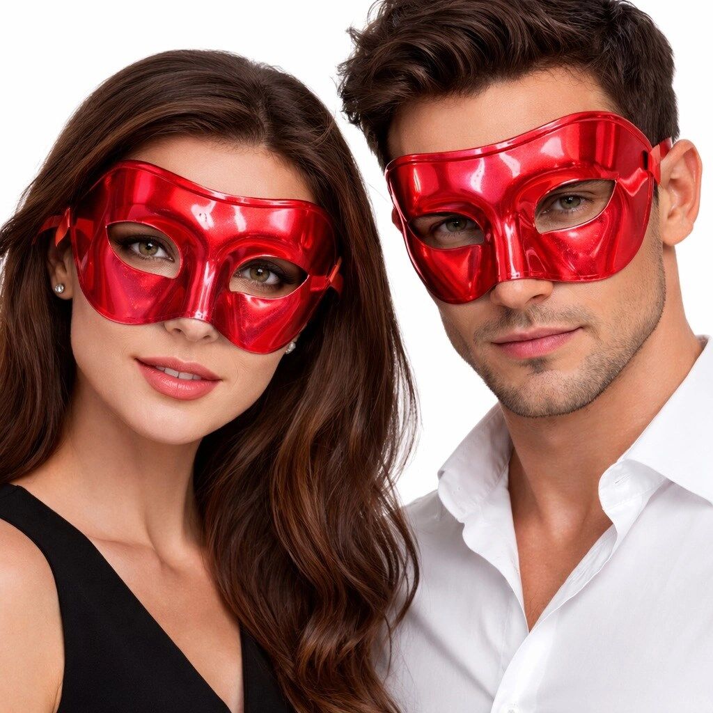 Mey İthalat® Metalize Parlak Parti Maskesi Kırmızı Renk 16x7 cm