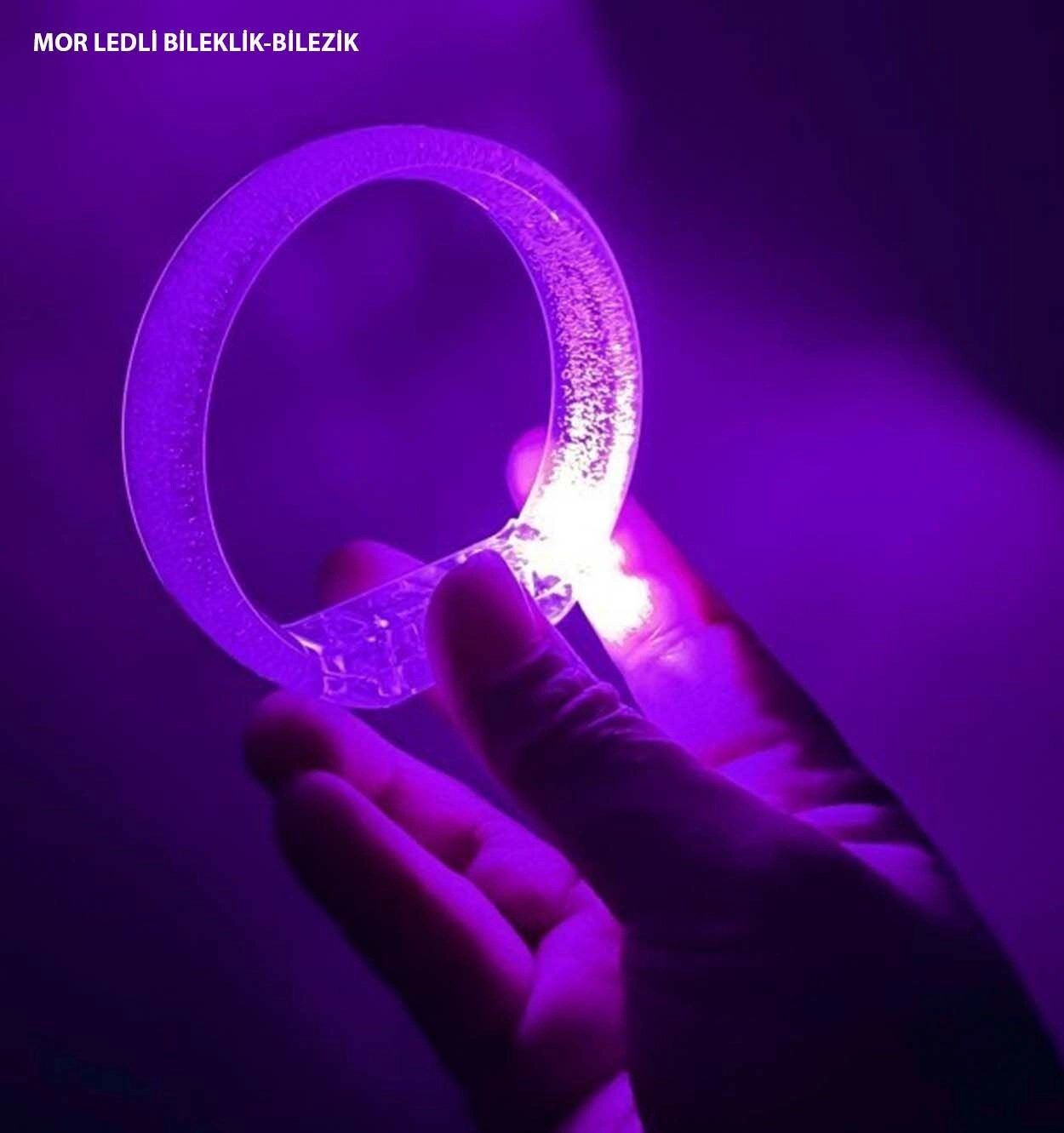 Mor LED ışıklı kabarcıklı bileklik, şeffaf yapısı ve içindeki mikro baloncuklarla ışıltılı ve büyüleyici bir görünüm sunar. 3 adet AG13 pil ile çalışır ve piller ürüne dahildir. Hem yetişkin hem çocuk kullanımına uygundur. Parti, festival, konser, gece yürüyüşleri ve özel davetlerde fark yaratmak isteyenler için ideal bir aksesuardır.