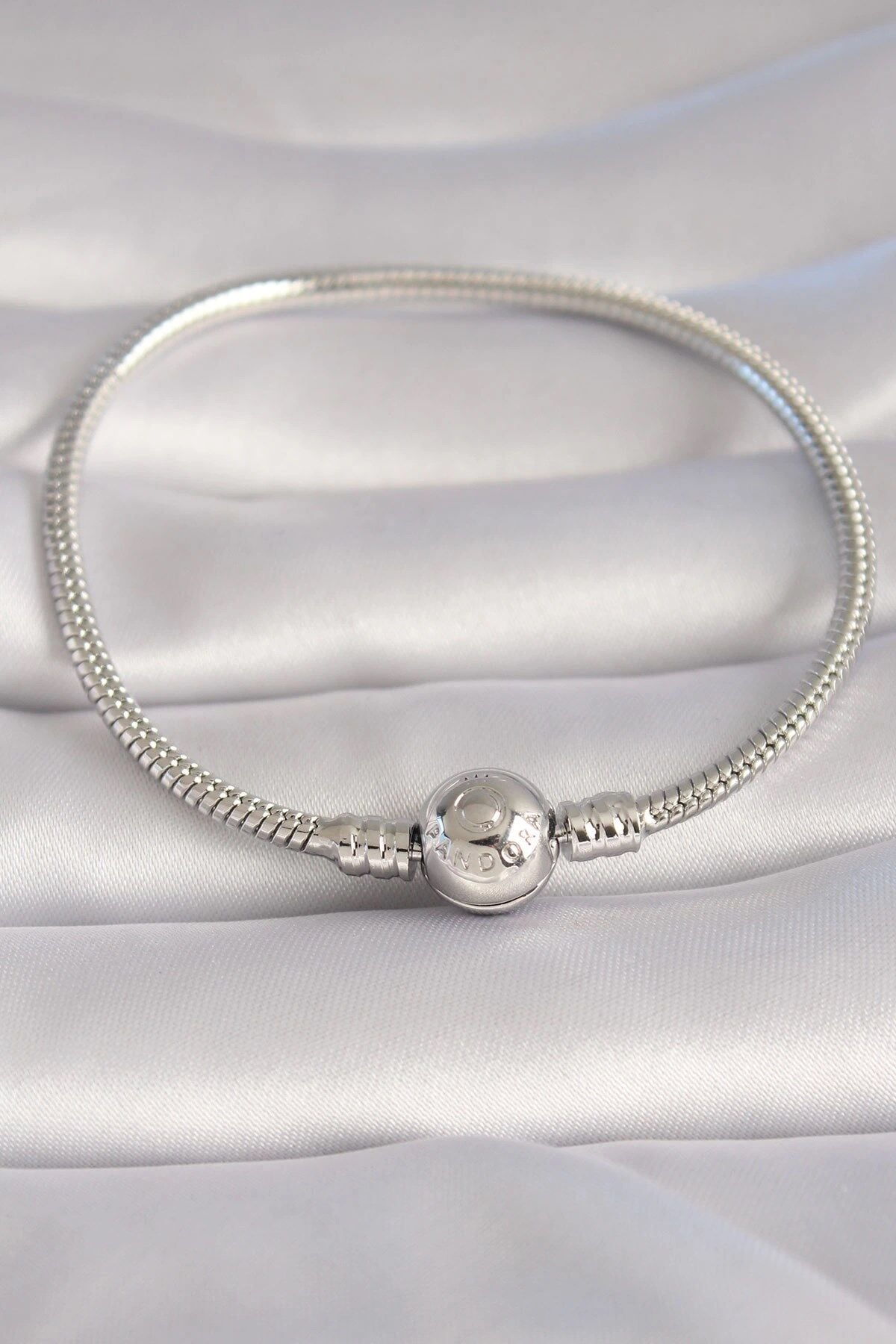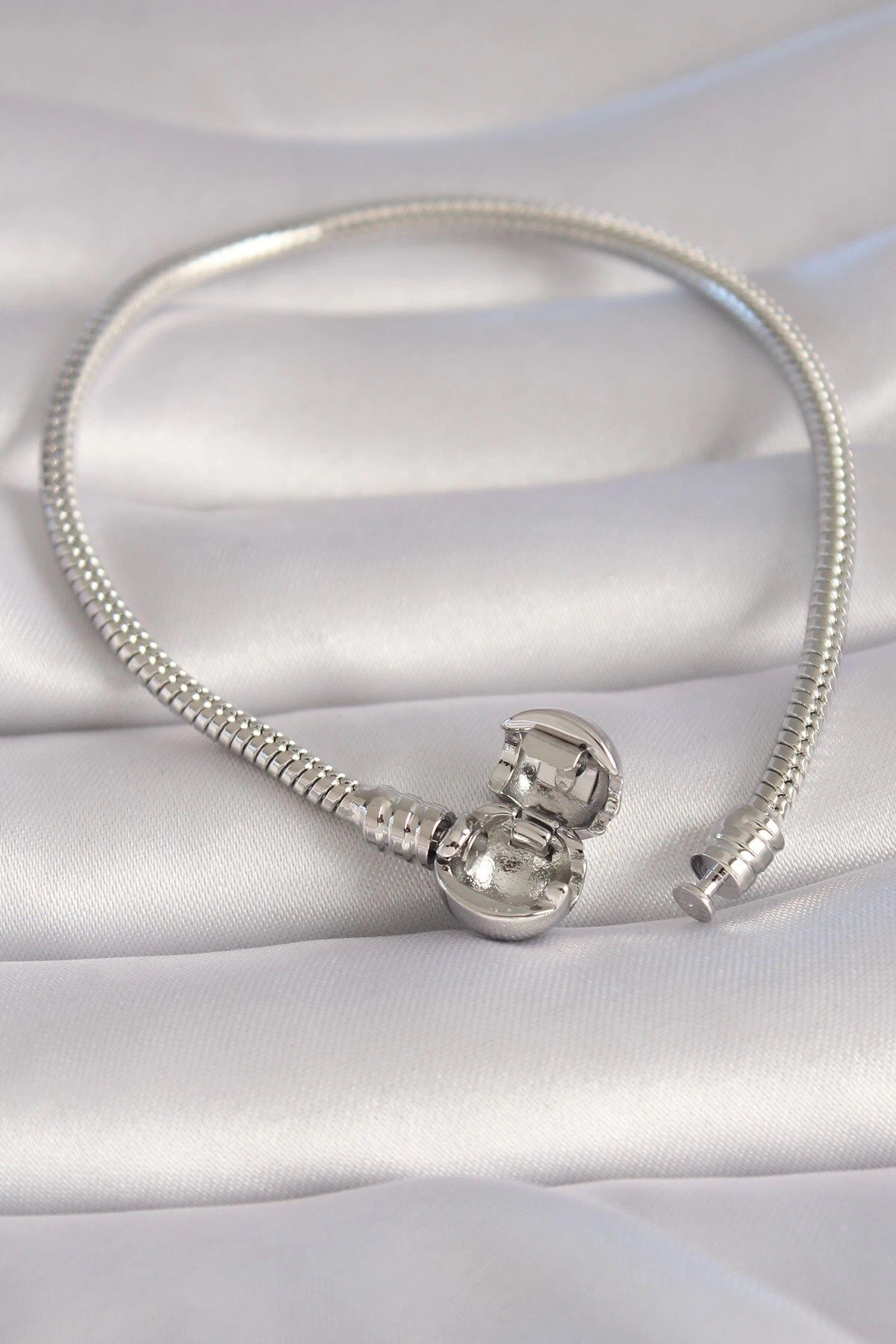 Mey İthalat® Pirinç Gümüş Renk İşleme Detay Charm Model Kadın Bileklik