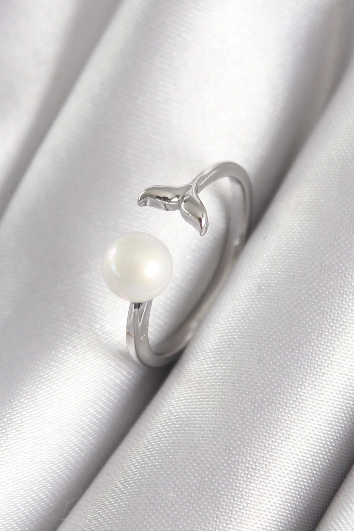 Mey İthalat® Pirinç Gümüş Renk Top İnci Figür Balık Kuyruğu Model Kadın Yüzük