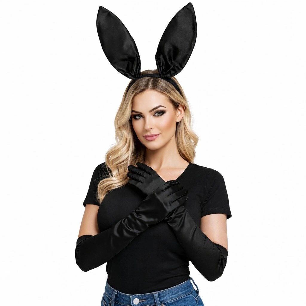 Mey İthalat® Siyah Parlak Tavşan Kulak ve 40 cm Parlak Siyah Eldiven Kostüm Seti