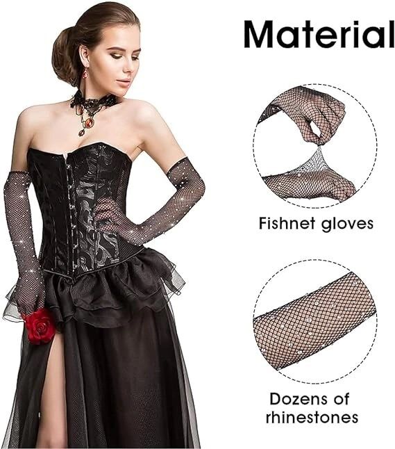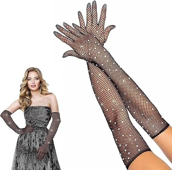 Mey İthalat® Siyah Renk İncili Elmas İşlemeli File Örgü Uzun Eldiven 45 cm