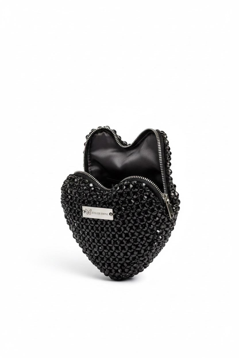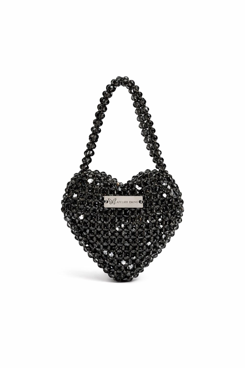Atelier Emine’in Crystal Gelato Couture serisine ait Mielo Ebano, 8 mm optik sınıfı kristal boncuklar ve üst taşıma kulpu kullanılarak tamamen el işçiliğiyle üretilmiş heykelsi formda premium mini çanta modelidir.