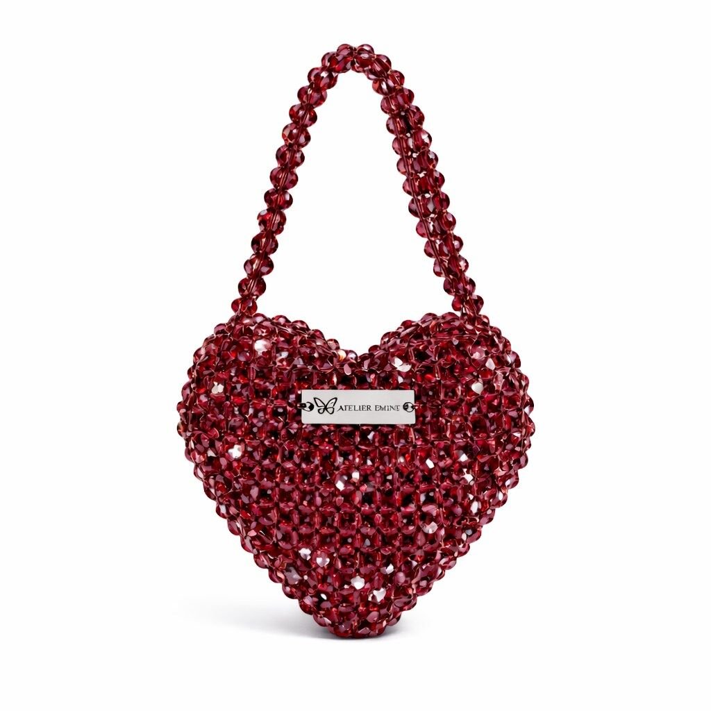 Atelier Emine’in Crystal Gelato Couture serisine ait Mielo Marsala, 8 mm optik sınıfı kristal boncuklar ve üst taşıma kulpu kullanılarak tamamen el işçiliğiyle üretilmiş heykelsi formda premium mini çanta modelidir.