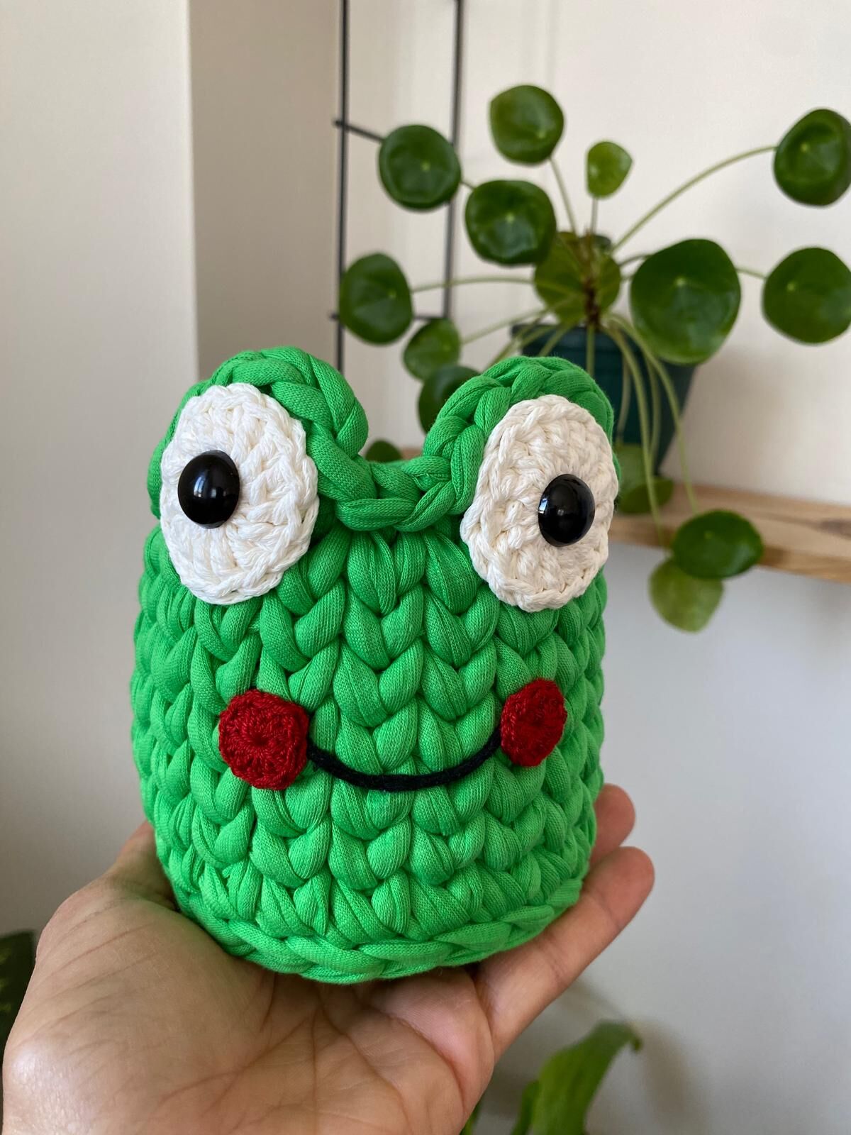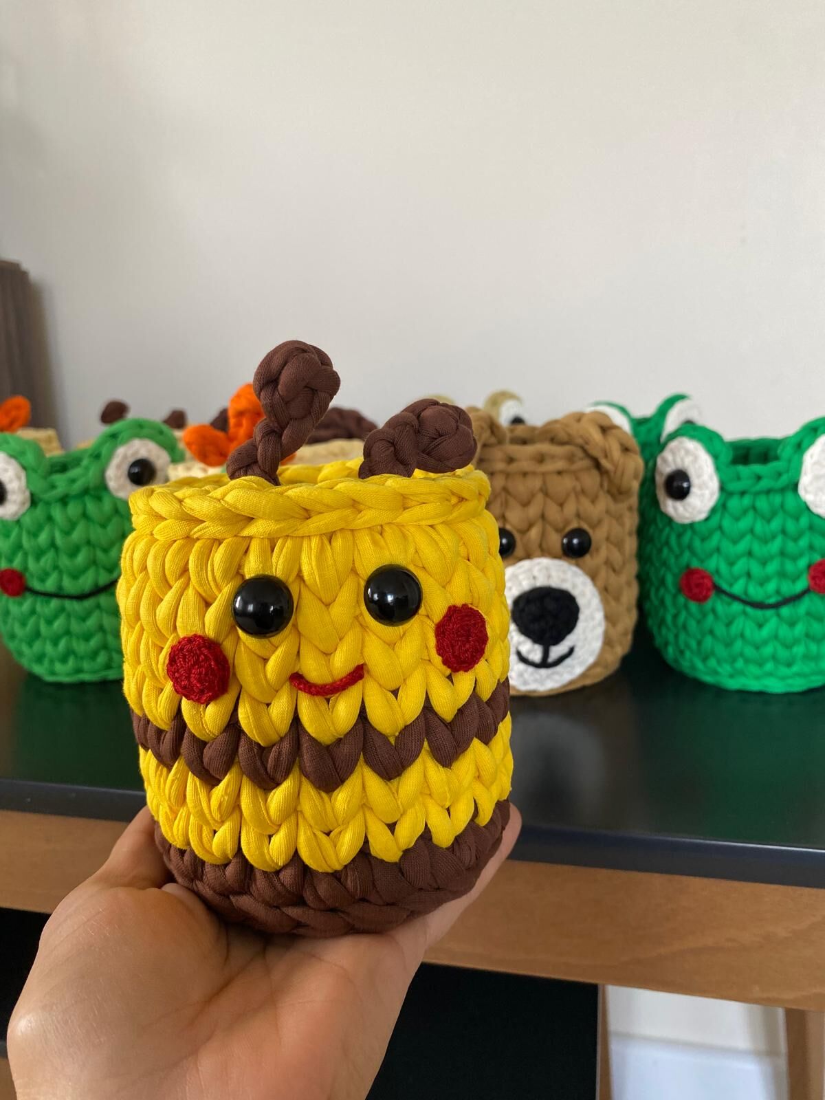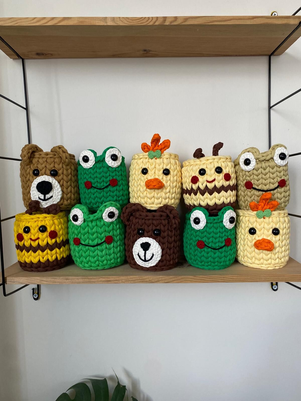 Mini Köpek Yüzlü El Örgüsü Kalemlik – Penye İp Sepet Organizer (10–12 cm)