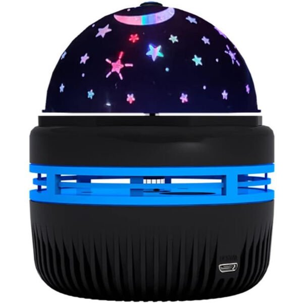 Mini yıldızlı projektör gece lambası, loş ve rahatlatıcı ışık atmosferi ile özellikle çocuk odalarında huzurlu bir uyku ortamı sağlar. Kompakt tasarımı sayesinde taşınabilir olup 7.9 cm çapında ve 9.6 cm yüksekliğindedir. Yıldız ve gezegen desenlerini renkli ışık efektleriyle tavan ve duvarlara yansıtarak görsel bir şölen sunar. USB kablosu ile kolayca şarj edilebilir ve kablosuz kullanım imkânı sunar. Gece lambası fonksiyonunun yanı sıra, projektör özelliği sayesinde eğlenceli bir ambiyans yaratır. Ev, çocuk odası, uyku zamanı, parti ya da rahatlatıcı bir atmosfer oluşturmak istediğiniz her ortamda kullanılabilir. Düşük enerji tüketimiyle uzun süreli kullanım sağlar ve sessiz çalışması sayesinde gece boyunca kesintisiz bir aydınlatma deneyimi sunar.