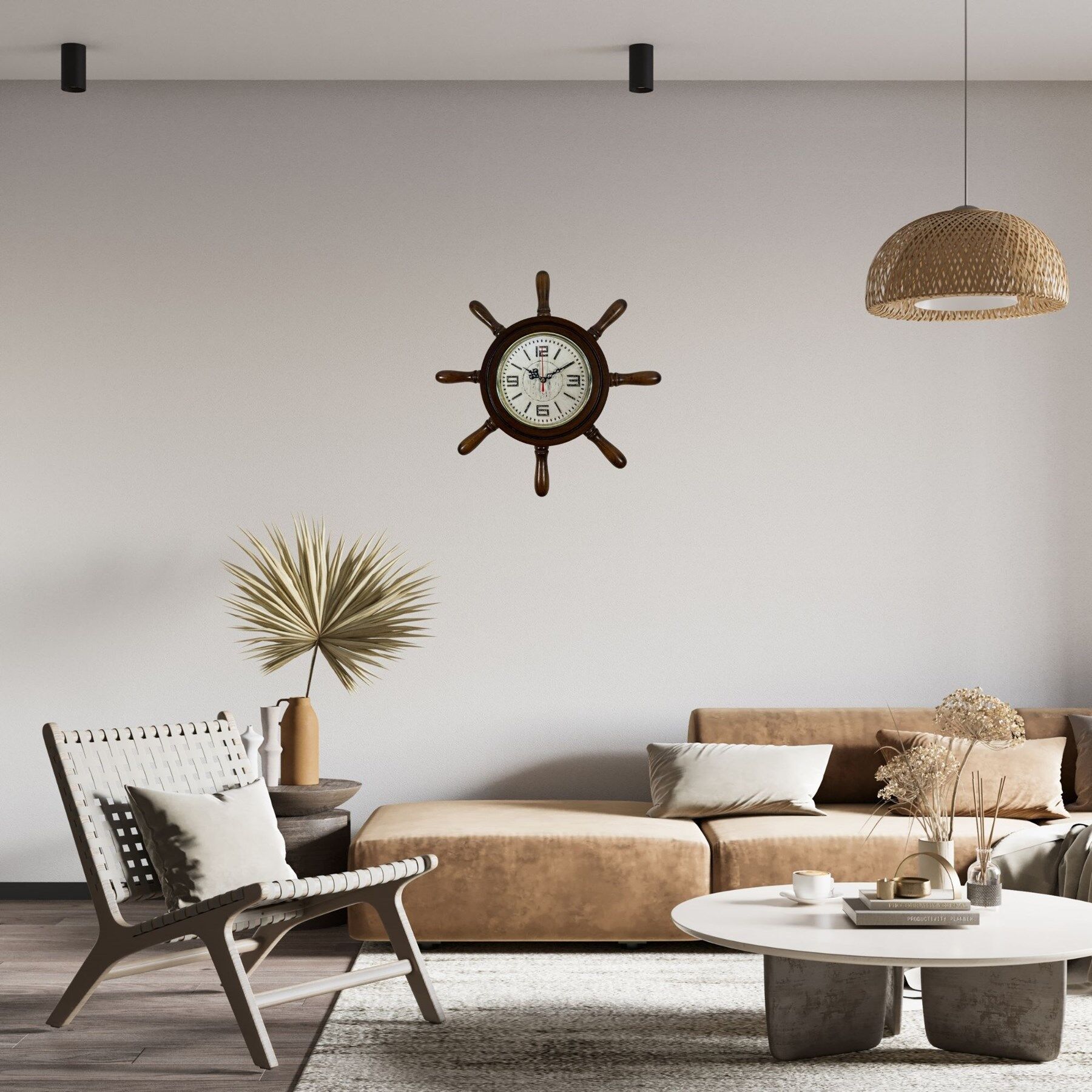 Eskitme ahşap görünümlü gövdesi ve dümen formundaki kavelaları sayesinde özellikle deniz temalı dekorasyonlarda, yazlık evlerde, teknelerde, restoranlarda, kafelerde ve salon dekorasyonlarında dikkat çekici bir dekoratif obje olarak öne çıkar. Şık tasarımı sayesinde hem fonksiyonel bir saat hem de güçlü bir dekoratif aksesuar olarak kullanılabilir.