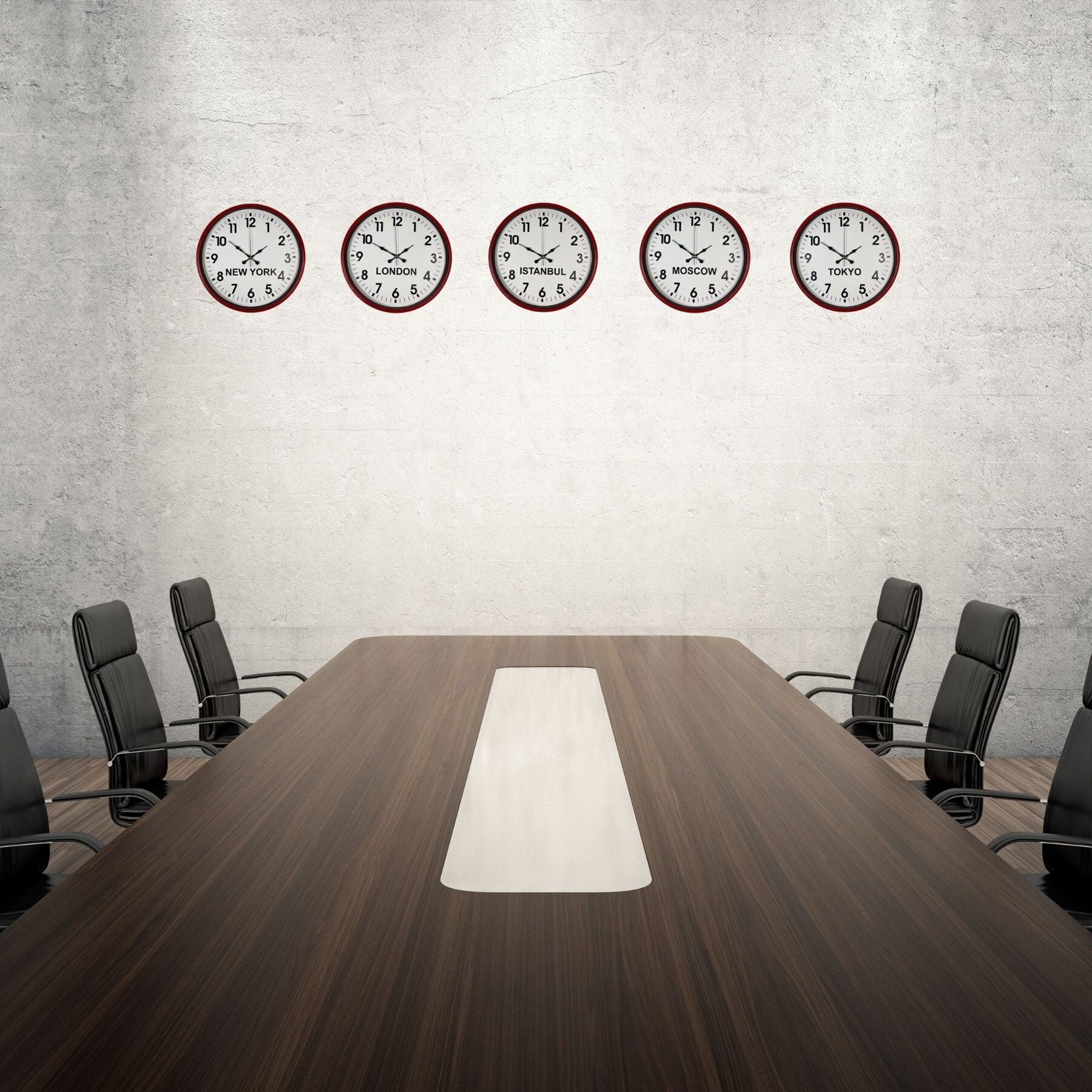 5 farklı zaman dilimini tek duvarda sunarak geniş kapsamlı zaman yönetimi sağlar. Özellikle global iş yapan firmalar için büyük kolaylık sunarken, aynı zamanda bulunduğu mekanda dikkat çekici bir odak noktası oluşturur.