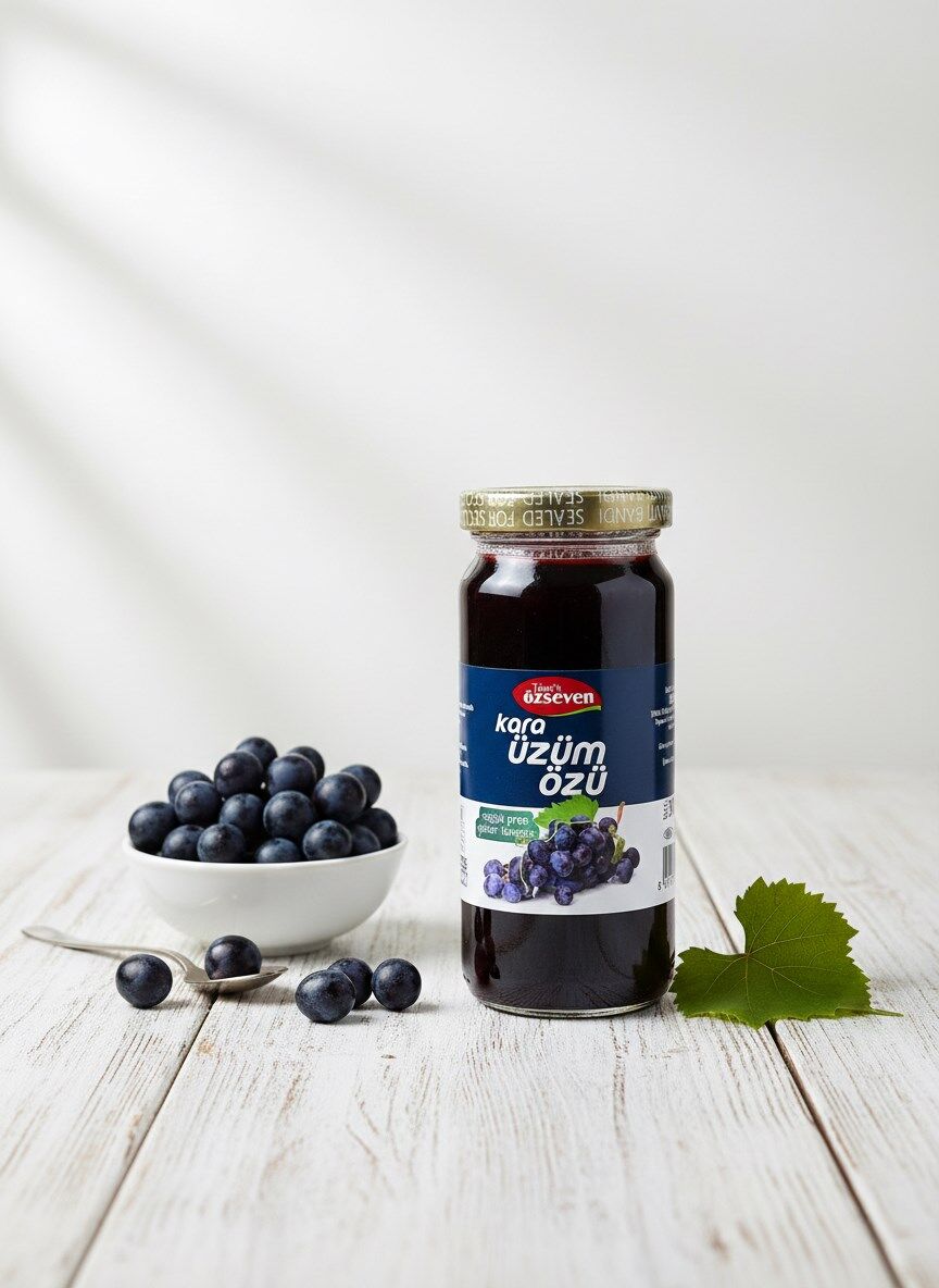 Özseven Kara Üzüm Özü, özenle seçilmiş taze kara üzümlerin işlenmesiyle elde edilmiştir. İçeriğinde ilave şeker, glikoz, koruyucu veya katkı maddesi bulunmaz. Doğal meyve aroması ve yoğun kıvamıyla gerçek kara üzüm lezzetini sofranıza taşır.
