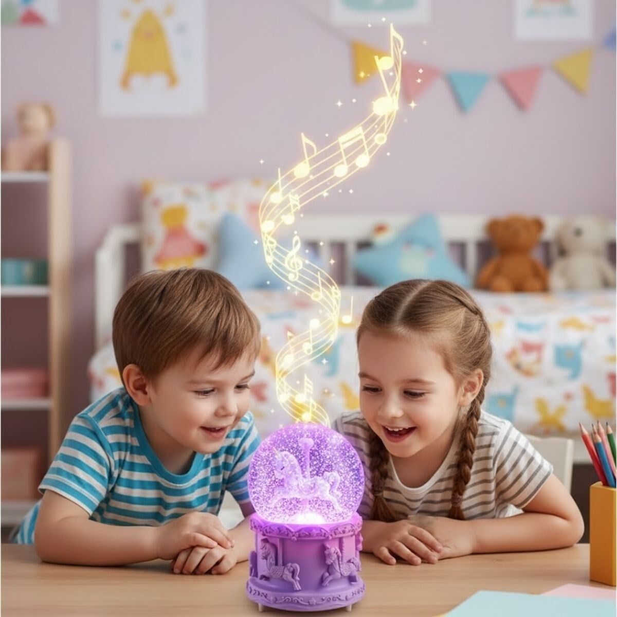Pilli Işıklı Müzikli Kar Küresi–At Figürlü Eğlenceli Masaüstü Biblo, LED Aydınlatmalı Dekoratif Hediyelik Kar Küresi