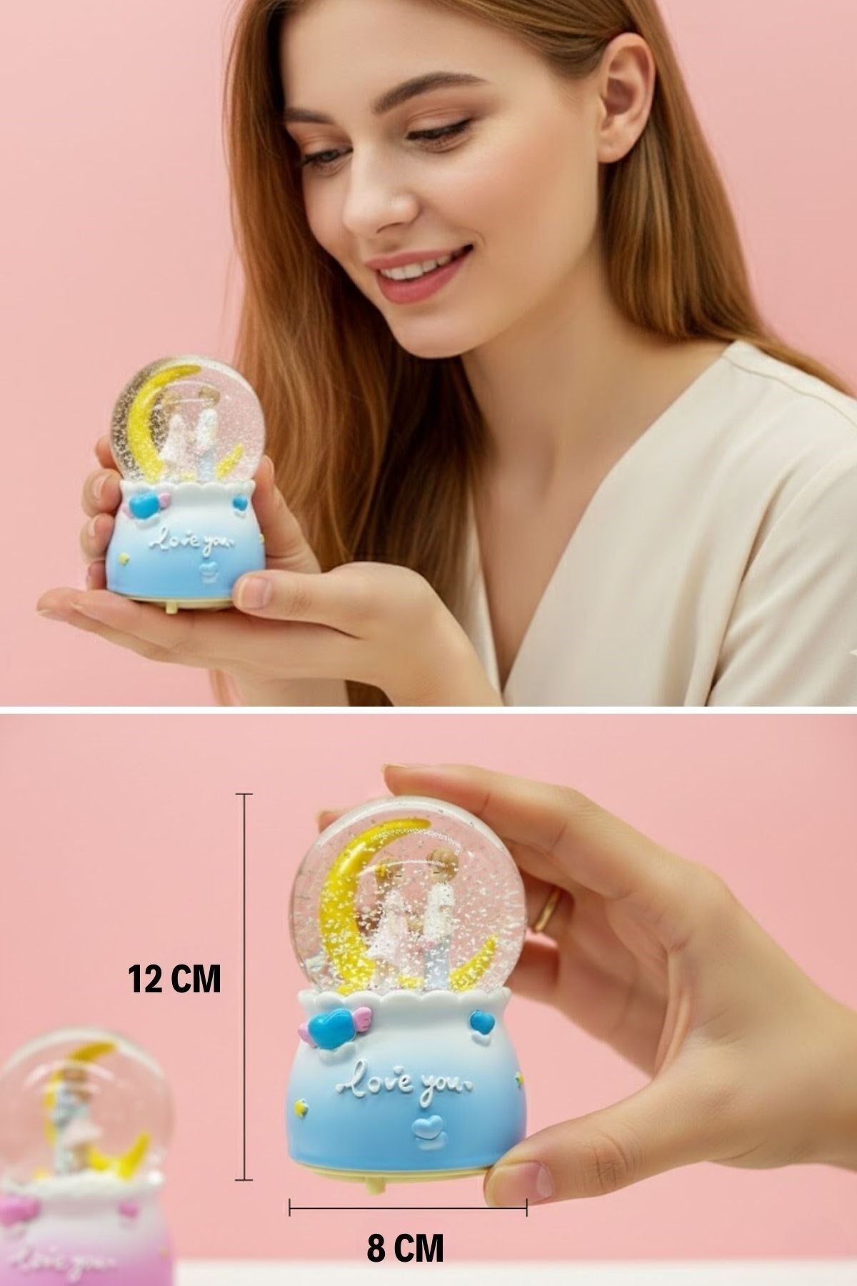 Işığı açıldığında kar tanelerinin ay figürü etrafında süzülmesi, loş ortamlarda şık ve huzur verici bir görünüm oluşturur. Müzik özelliğiyle birlikte romantik anlara eşlik ederken, sevdiklerinize hediye edebileceğiniz anlamlı ve estetik bir alternatif sunar. Sevgililer Günü, doğum günü, yıl dönümü ve özel günler için zarif bir hediyedir.