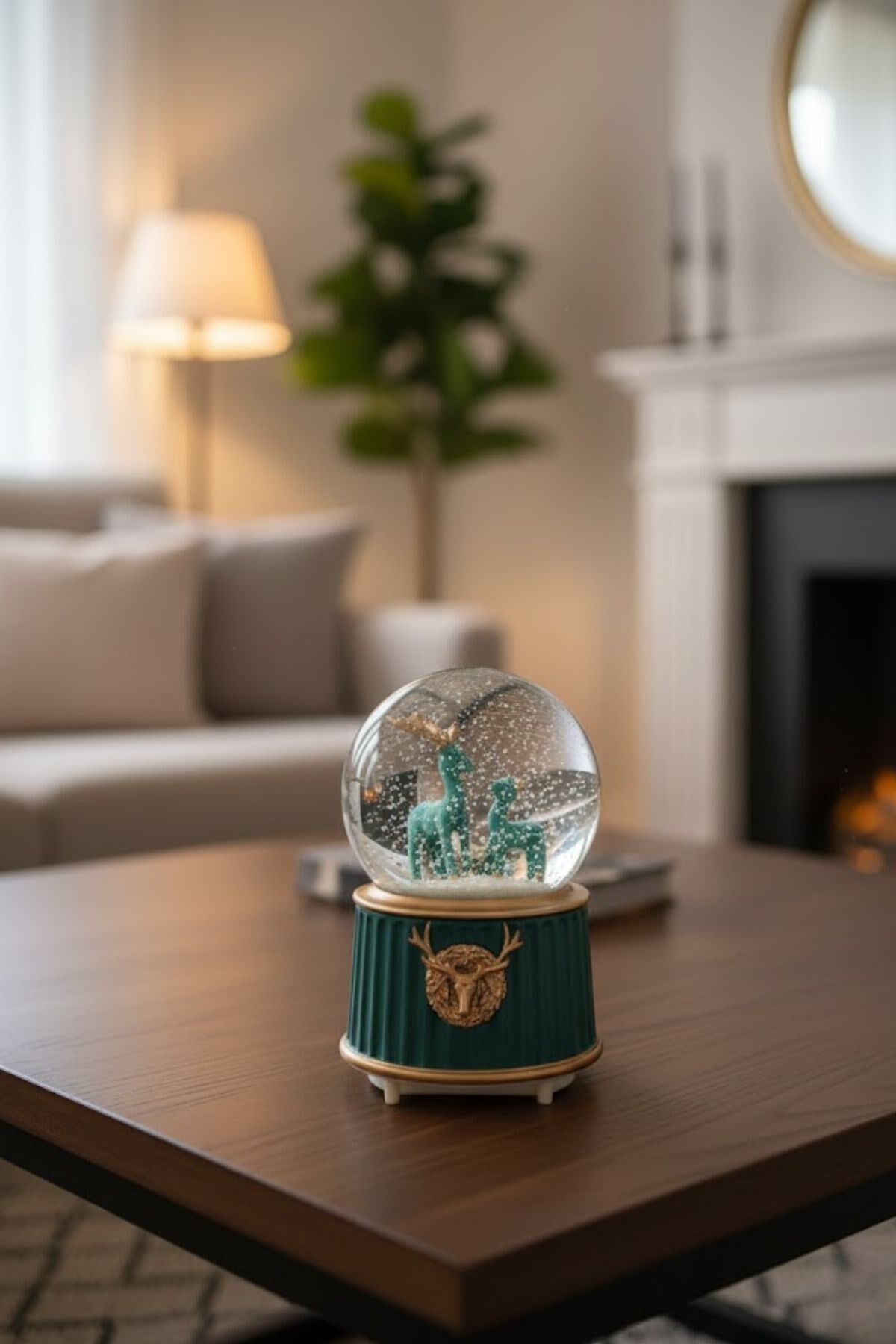 AD, estetik tasarım, kaliteli işçilik ve kullanıcı dostu detayları bir araya getirerek yaşam alanlarınıza değer katan dekoratif ürünler sunar. İki geyikli yeşil figürlü bu özel kar küresi, kışın ve yılbaşının büyüsünü dekorasyonunuza taşımanın en şık yollarından biridir.