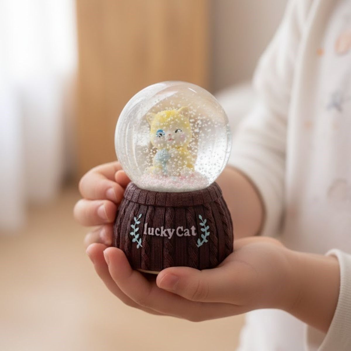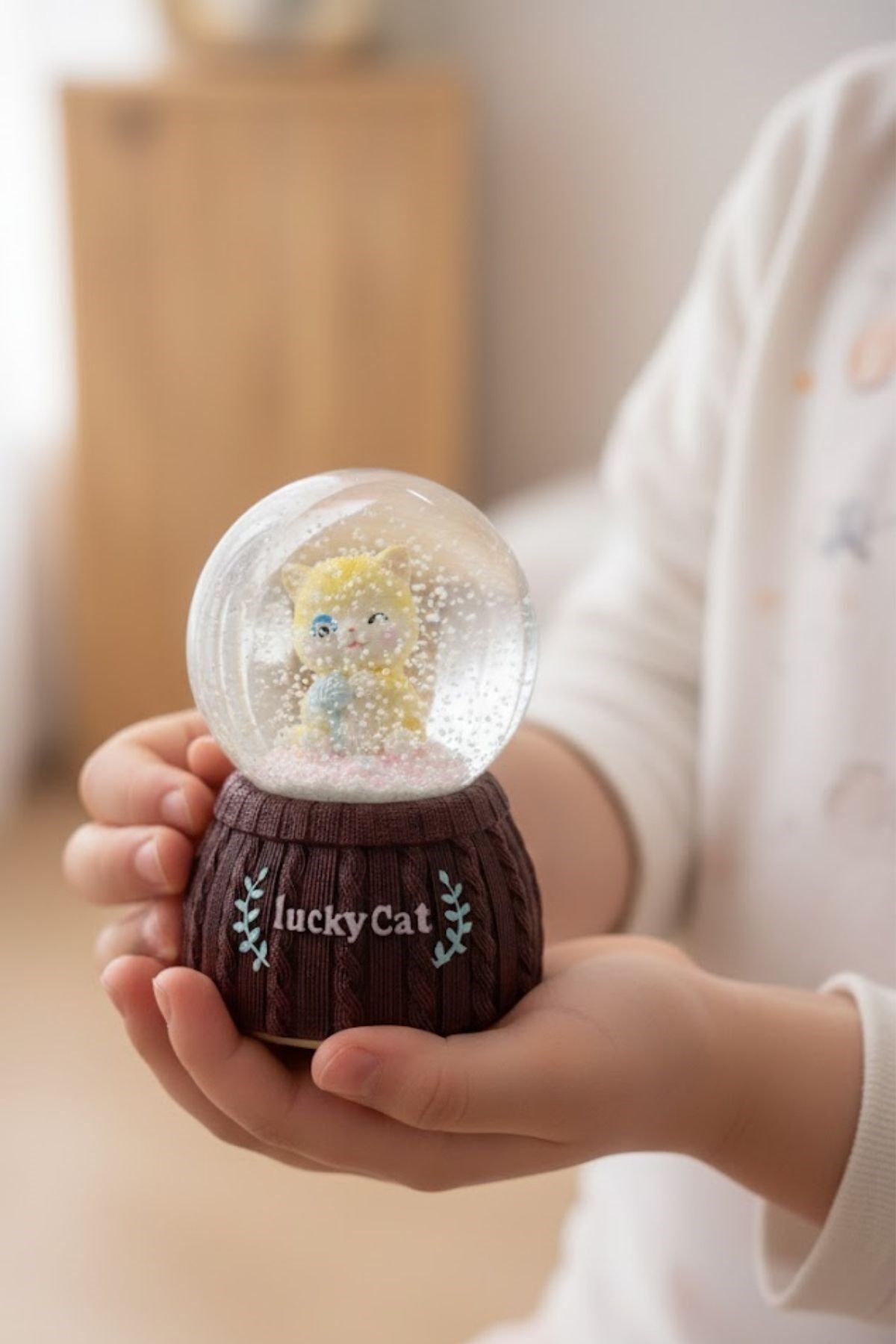 Pilli Işıklı Müzikli Kar Küresi – Şanslı Kedi Figürlü Eğlenceli Masaüstü Biblo