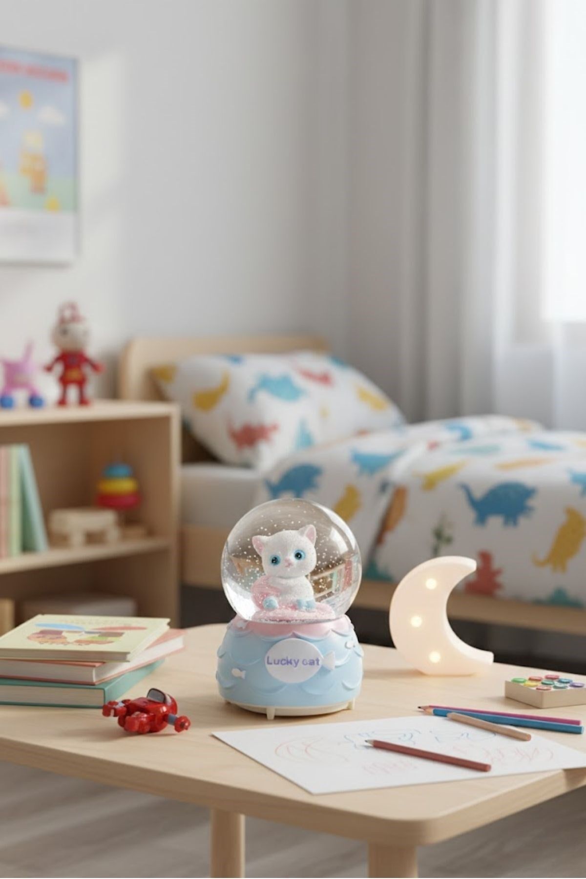 Şans ve mutluluk temasıyla özel günler için anlamlı bir hediye alternatifi sunan kar küresi; doğum günü, yılbaşı, yeni iş, yeni ev ve özel anlar için ideal bir tercihtir. Hem çocukların hem de yetişkinlerin beğenisini kazanan eğlenceli kedi figürüyle dekorasyonunuza sıcak bir dokunuş ekler.