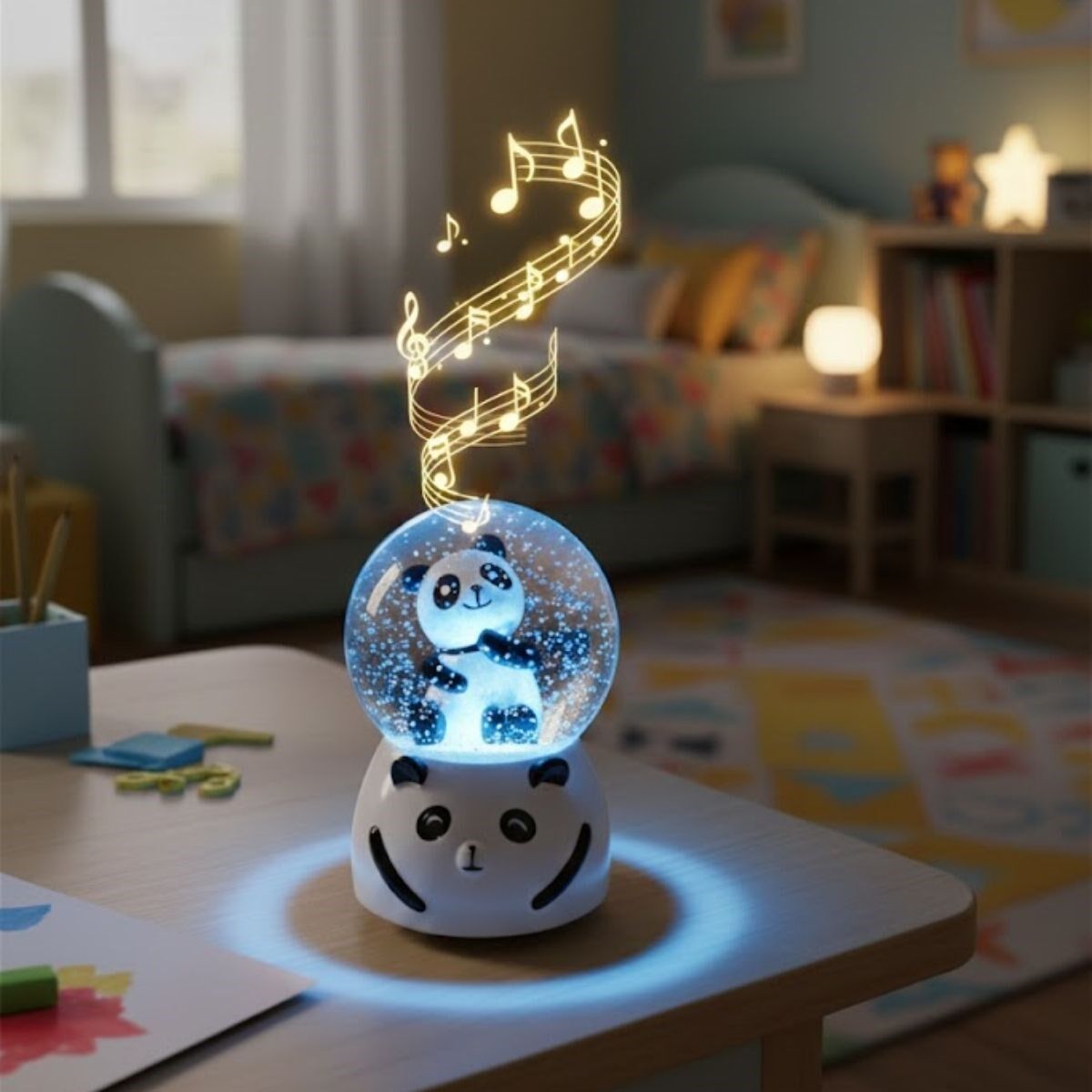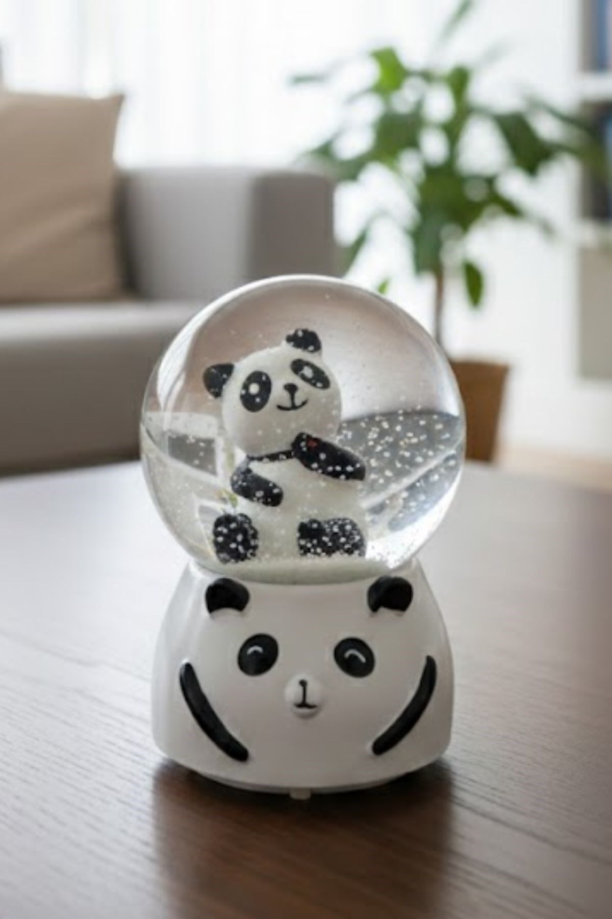 Pilli Işıklı Müzikli Kar Küresi–Sevimli Panda Figürlü Eğlenceli Masaüstü Biblo, LED Aydınlatmalı Dekoratif Hediyelik Kar Küresi