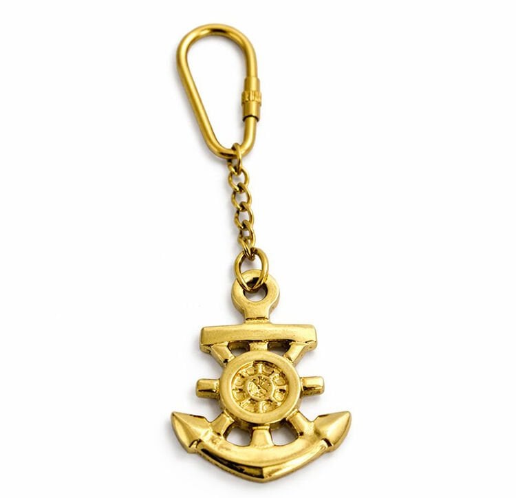 1 Adet Pirinç Çapalı Dümen Tasarımlı Anahtarlık (11 cm)