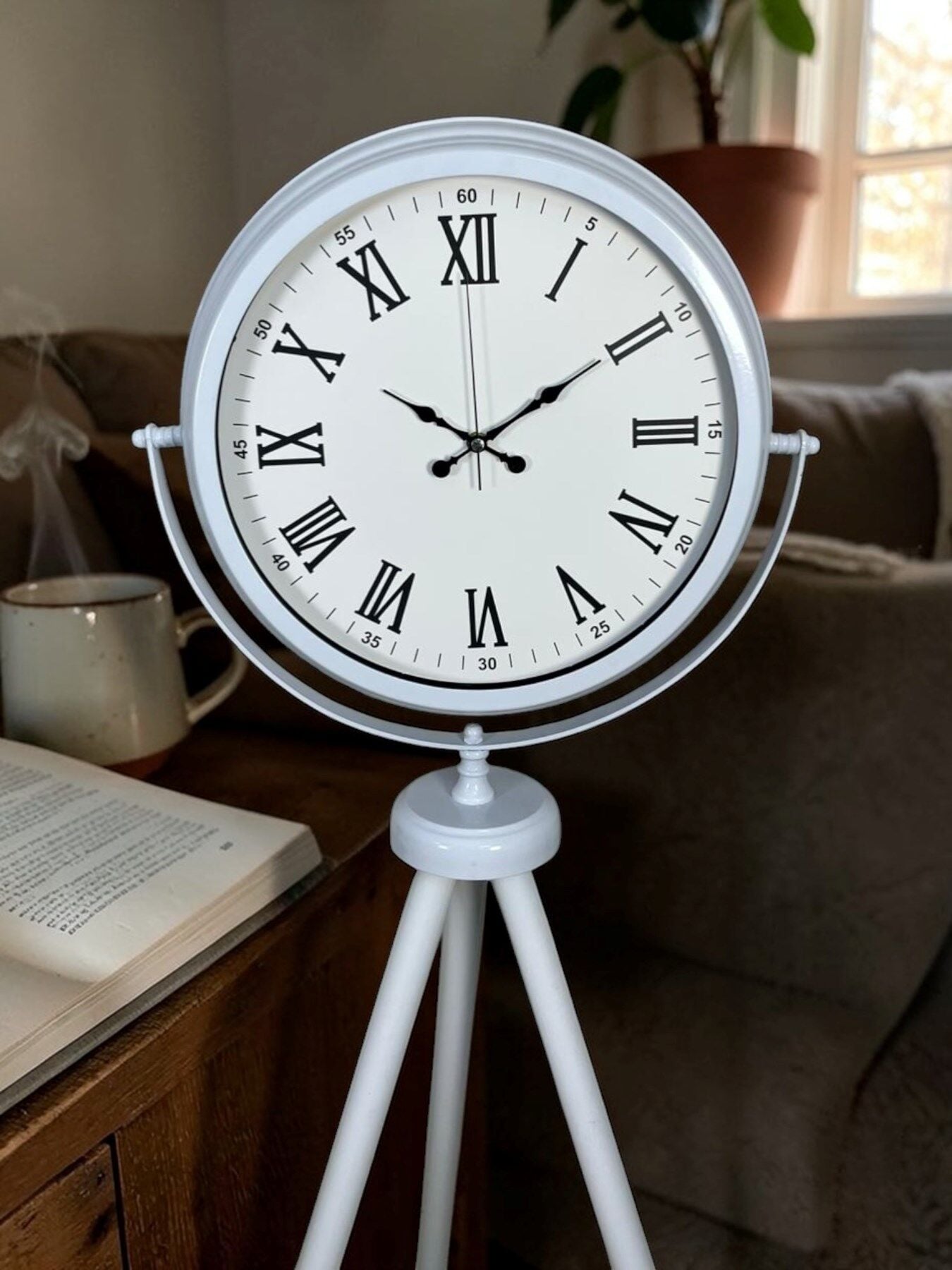 Tripod (3 ayaklı) özel yapısı ile yalnızca bir saat değil, aynı zamanda dekoratif bir obje olarak bulunduğu ortamda dikkat çeker. İnce ve dengeli Roma rakamları, saatin hem estetik hem de kolay okunabilir olmasını sağlar.