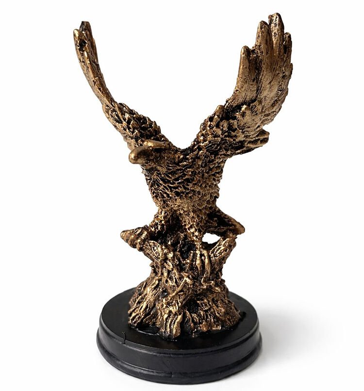 Polyester kartal figürü, güçlü duruşu ve detaylı işçiliğiyle dekoratif alanlara karakter kazandıran özel bir üründür. Dayanıklı polyester malzemeden üretilmiş olması sayesinde uzun süre formunu korur ve iç mekân kullanımına uygundur. Kartal figürünün kanat detayları ve heykelsi yapısı, bulunduğu ortama prestijli ve dikkat çekici bir görünüm kazandırır. Masa üstü, raf, vitrin, ofis masası veya kitaplık gibi alanlarda dekoratif obje olarak rahatlıkla kullanılabilir. 13x9 cm ölçülerindeki kompakt yapısı sayesinde masa, raf ve vitrinlerde fazla yer kaplamadan dekoratif bir görünüm sunarken, sembolik gücüyle bulunduğu ortamda etkileyici bir dekor unsuru oluşturur.